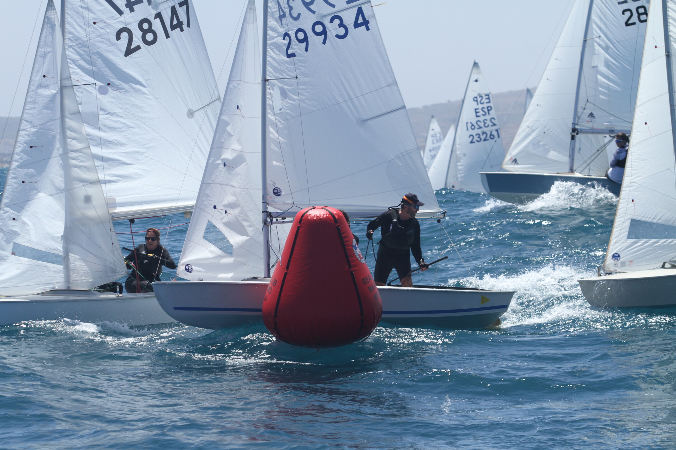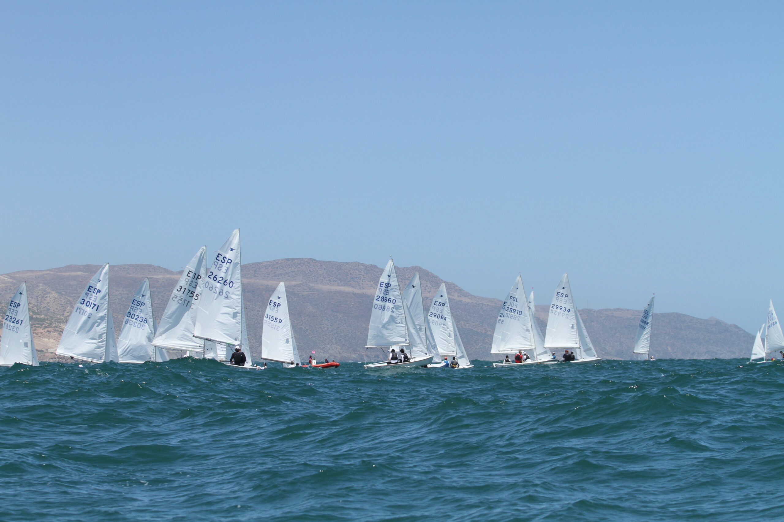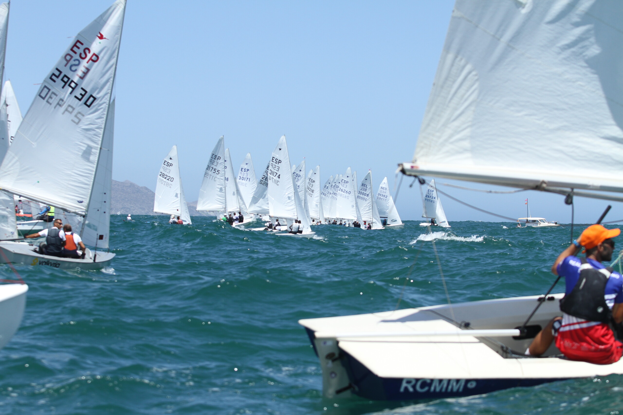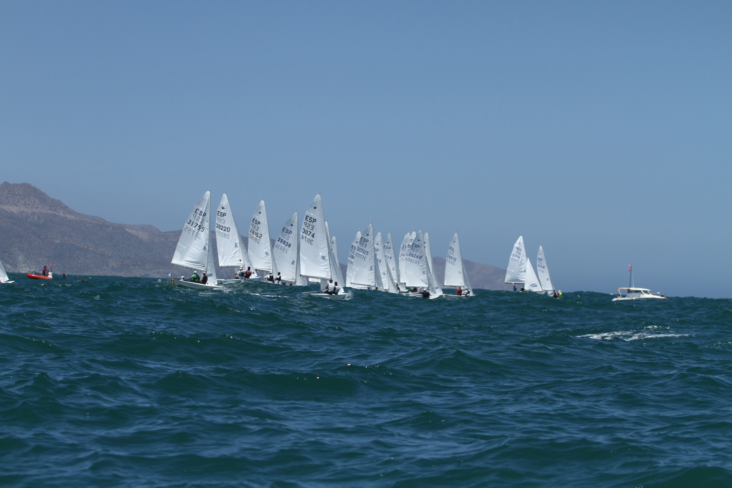 De cara a la segunda prueba el Comité tuvo que reposicionarse y situar la salida rumbo a 070º. En ese momento la intensidad había bajado a los nueve nudos. Incluso, la flota realizó la última ceñida con siete nudos y con muchas olas.