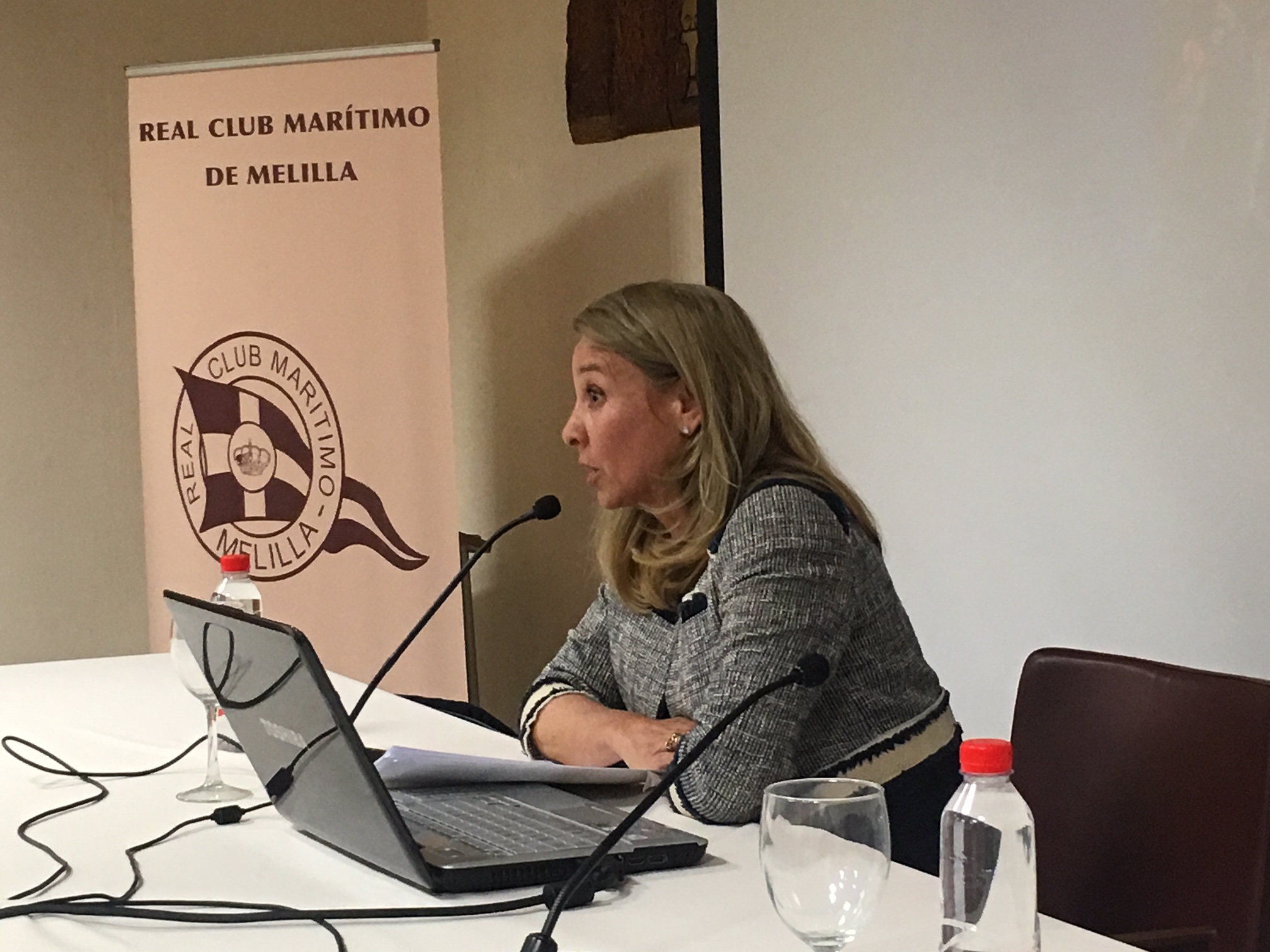 El vocal de cultura del RCMM, Juan Bellver, fue el encargado de presentar a la escritora y  posteriormente el vicepresidente de la entidad, Rafael Imbroda, le entregó un recuerdo de su paso por esta nueva edición de las Jornadas Culturales del Club Marítimo de Melilla.