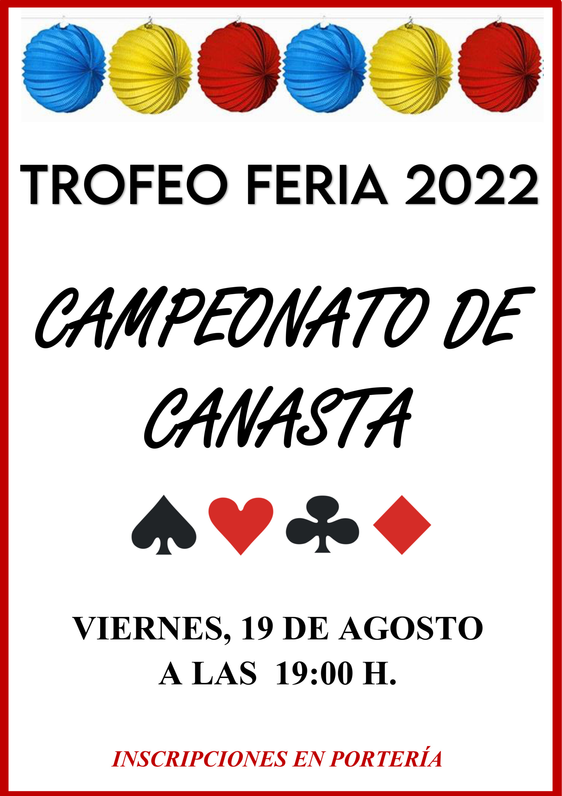 CAMPEONATO DE CANASTA: viernes 19 de agosto, desde las 19h.