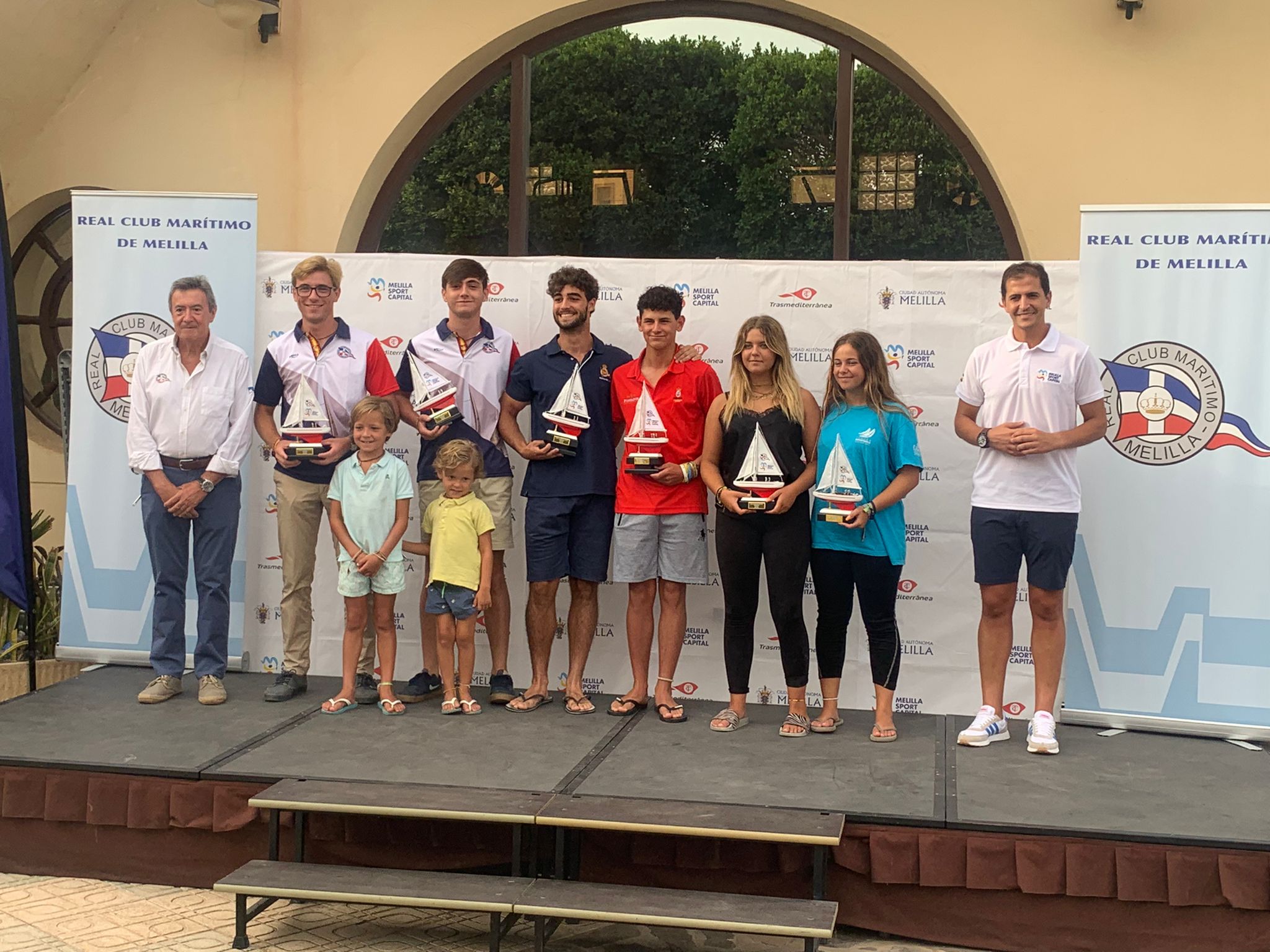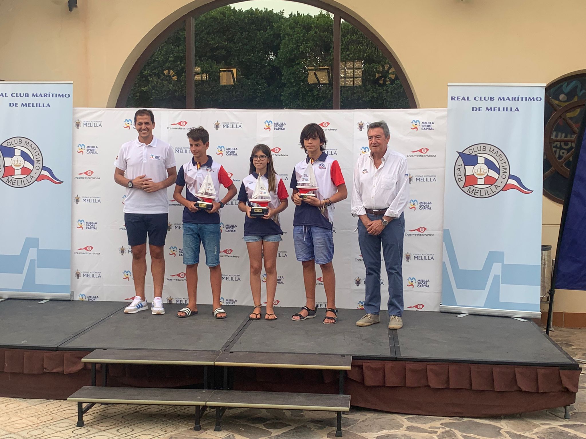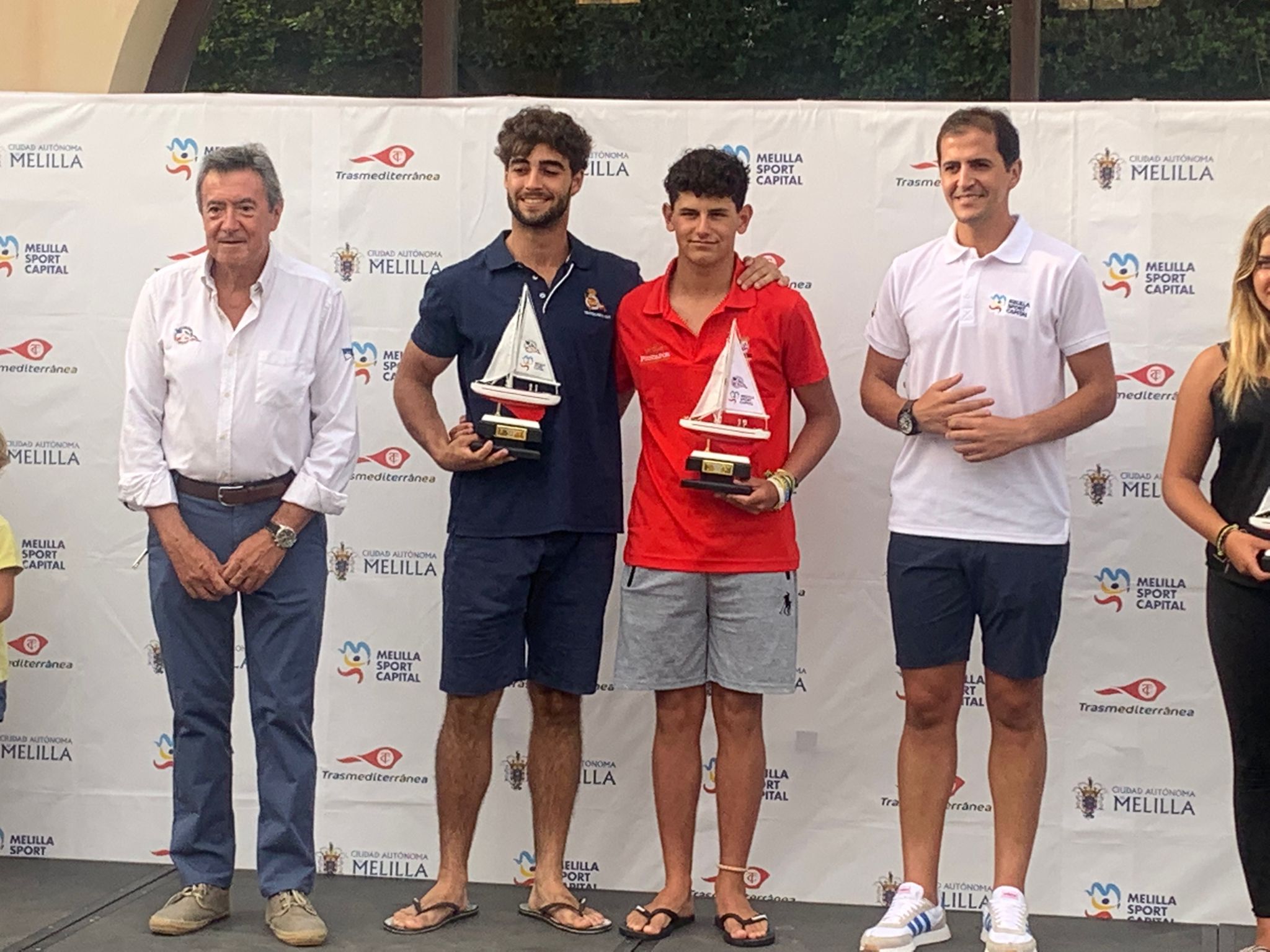 Los primeros premios en entregarse han correspondido a la clase Techno 293, con Blanca Cabrera como campeona, seguida por Marcos Duarte (ha recogido su galardón Fabio Díaz) y Alejo Pérez, todos ellos de la flota del Real Club Marítimo de Melilla.