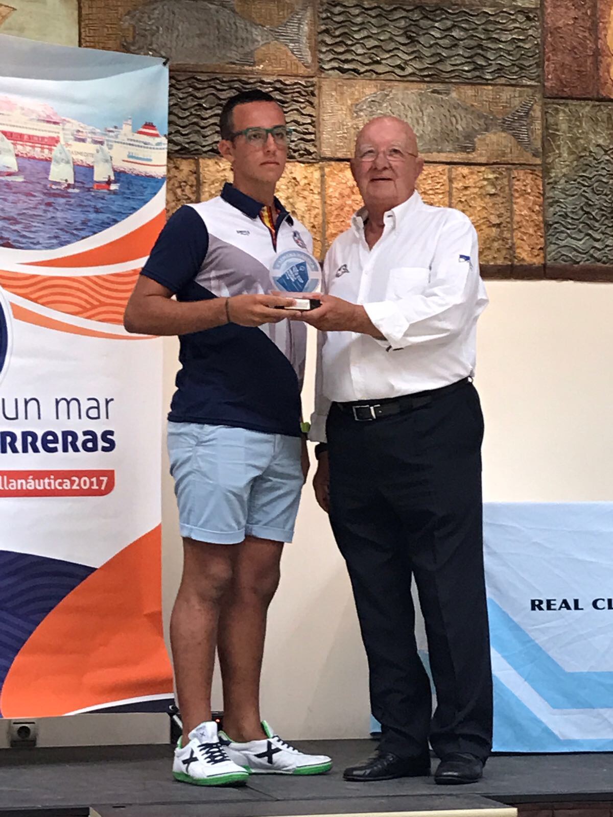 Jesús Fernández (RCM Melilla), que ya ganó en el año 2015, recibía el galardón como ganador de la clase láser radial. Le han acompañado en el podio los compañeros de equipo Israel Martínez y Antonio Muñoz.
