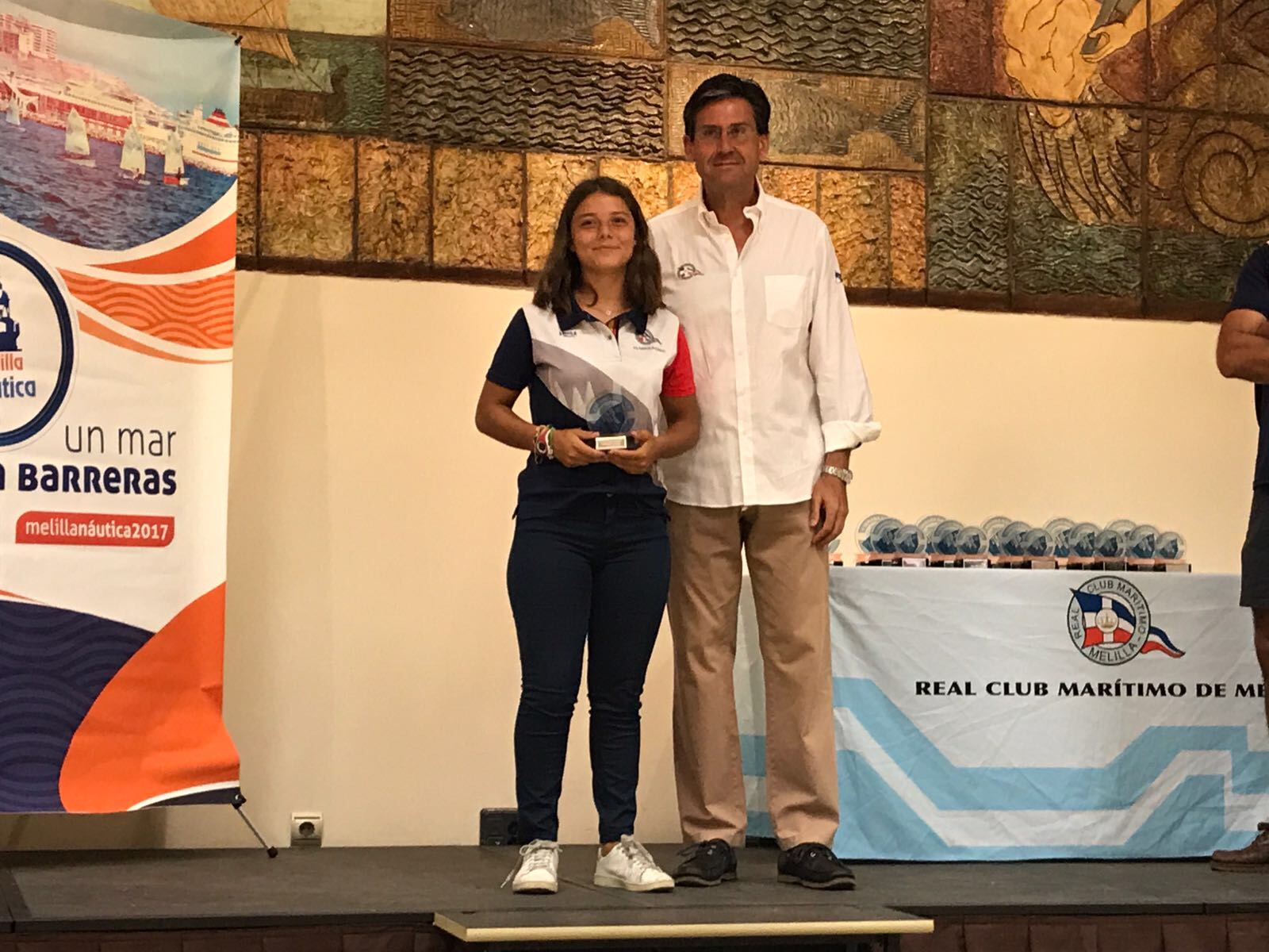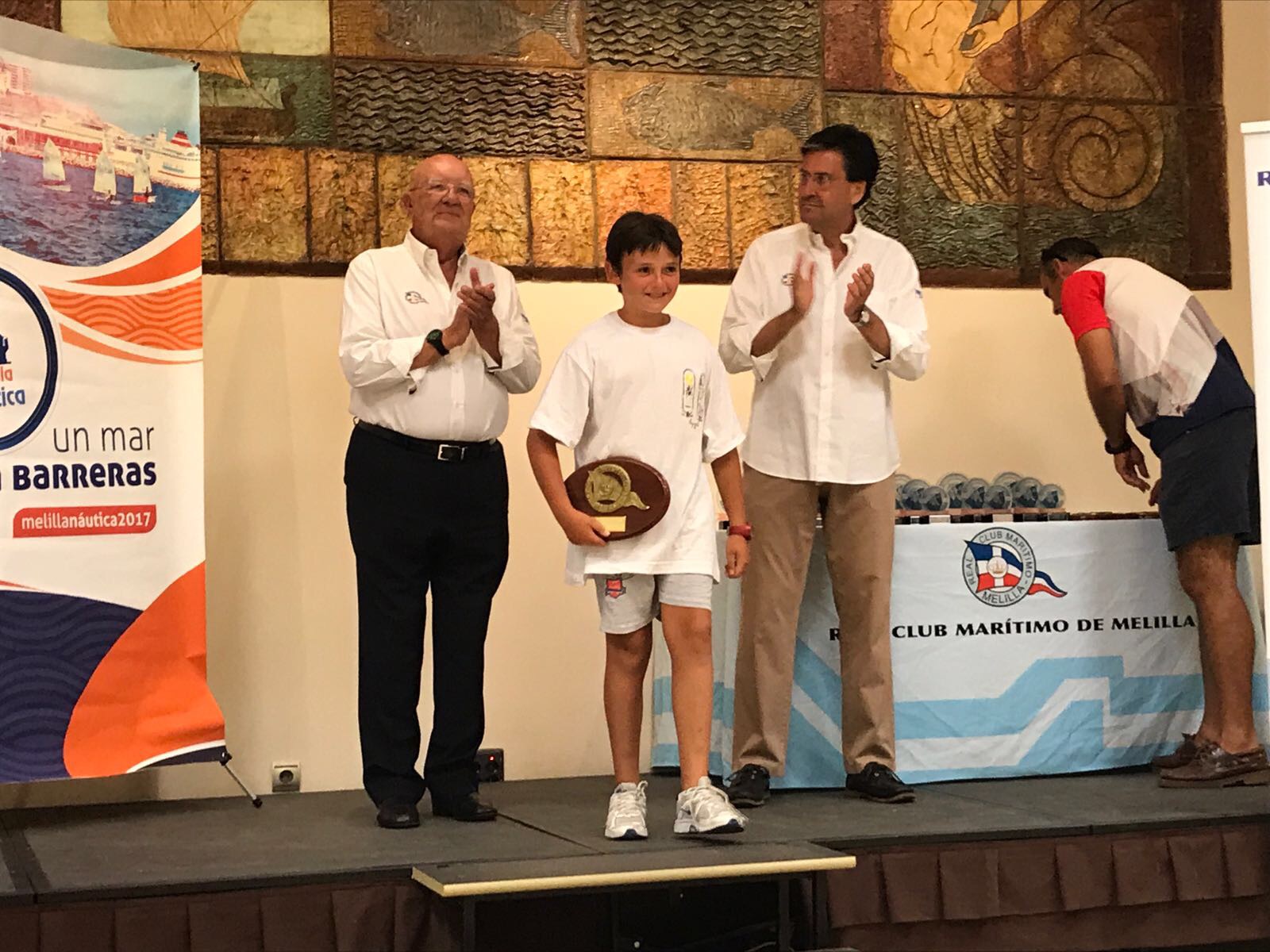 Un acto llevado a cabo en los salones del Club Marítimo, en los que también se han dado cita el Segundo Jefe de la Comgemel, Angel González, el Coronel de la Guardia Civil, Antonio Sierras, el presidente de la Federación Melillense de Vela, Juan Manuel Hernández, y representantes de la naviera Trasmediterranea, que ha sido el patrocinador principal del evento.