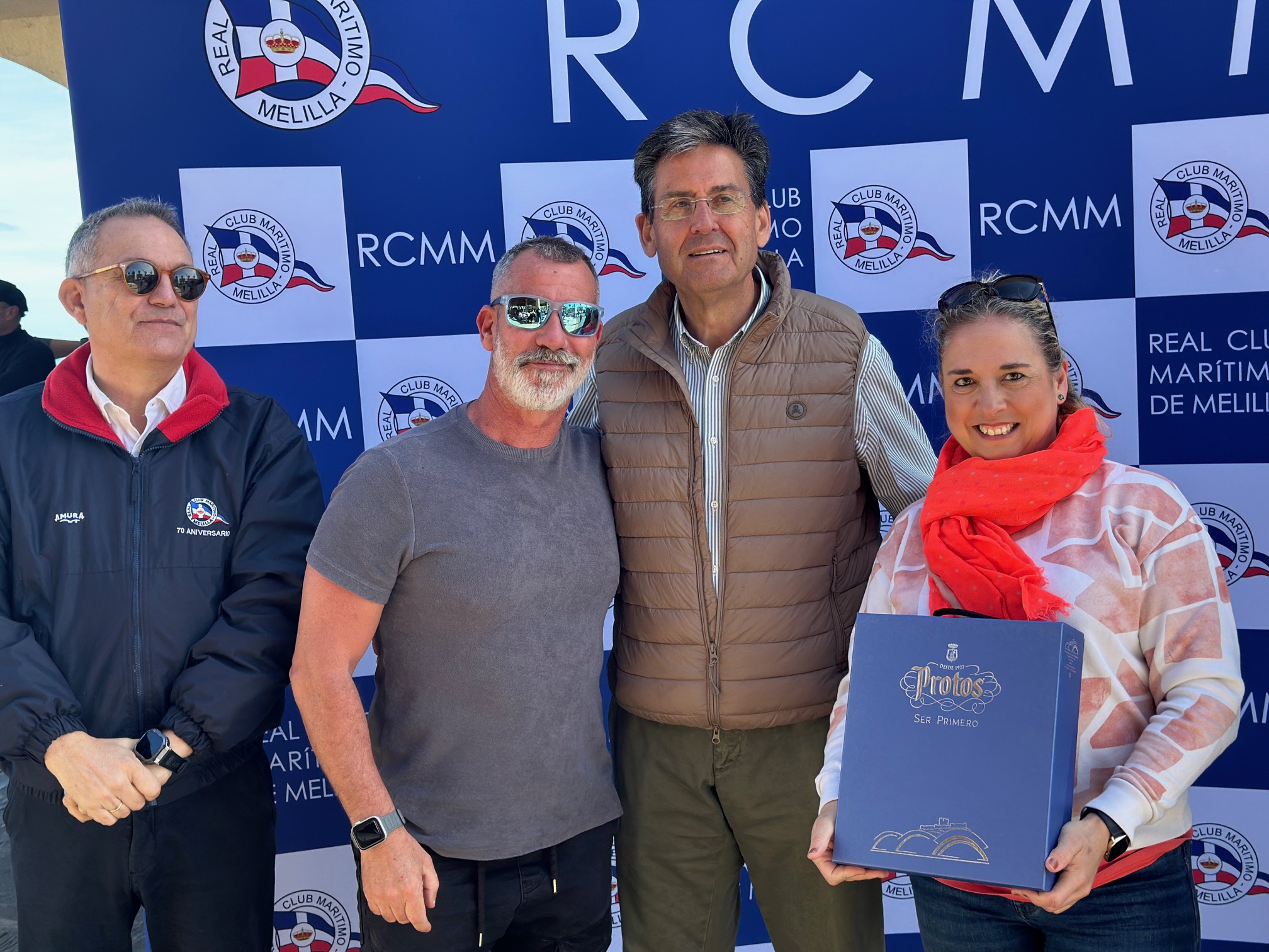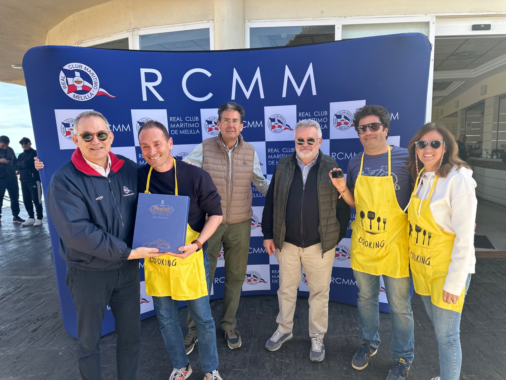 El presidente del Real Club Marítimo de Melilla, Jerónimo, junto a los directivos Antonio Bravo y Juan Bellver, han sido los encargados de entregar los regalos a los equipos que a juicio del jurado han tenido más puntuación.
