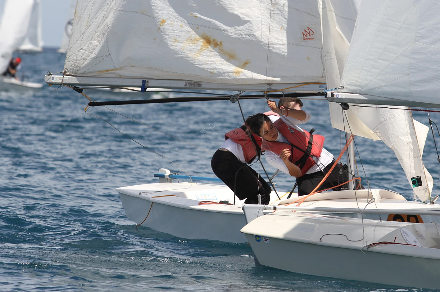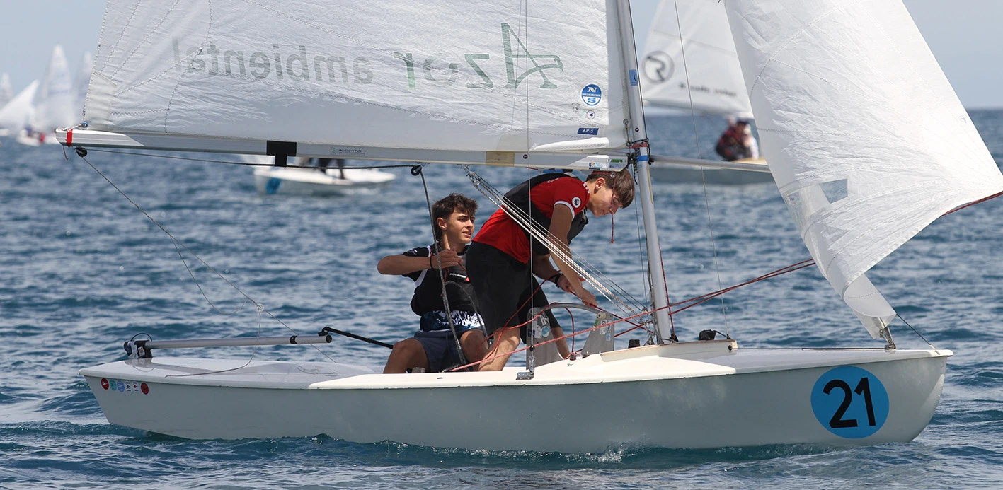 La primera manga era dominada por las tripulaciones del CM Mahón, con Jordi Triay y Lluis Mas imponiéndose en el grupo amarillo, mientras que Enric Noguera y Cristian Vidal lo hacían en el grupo azul.