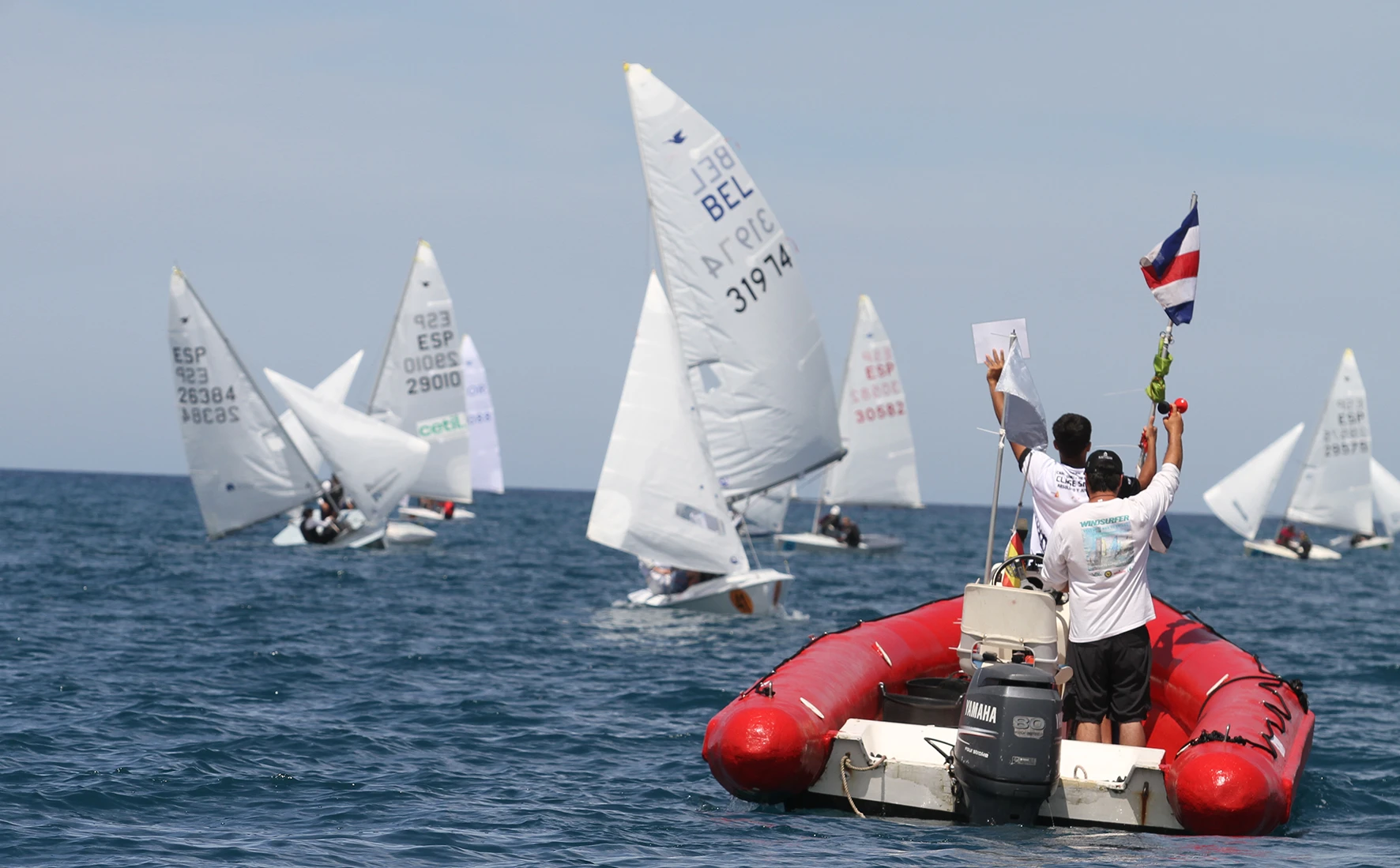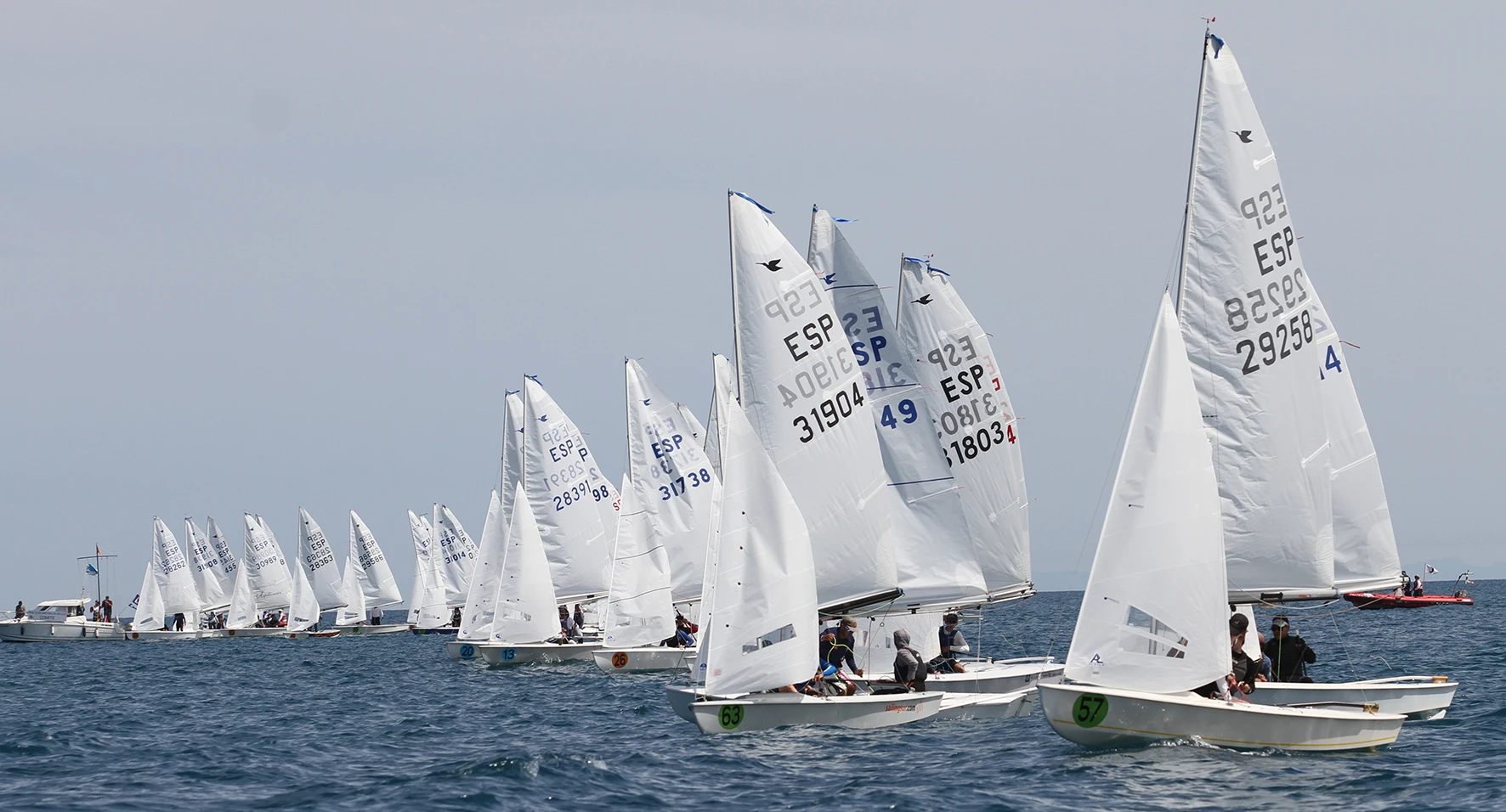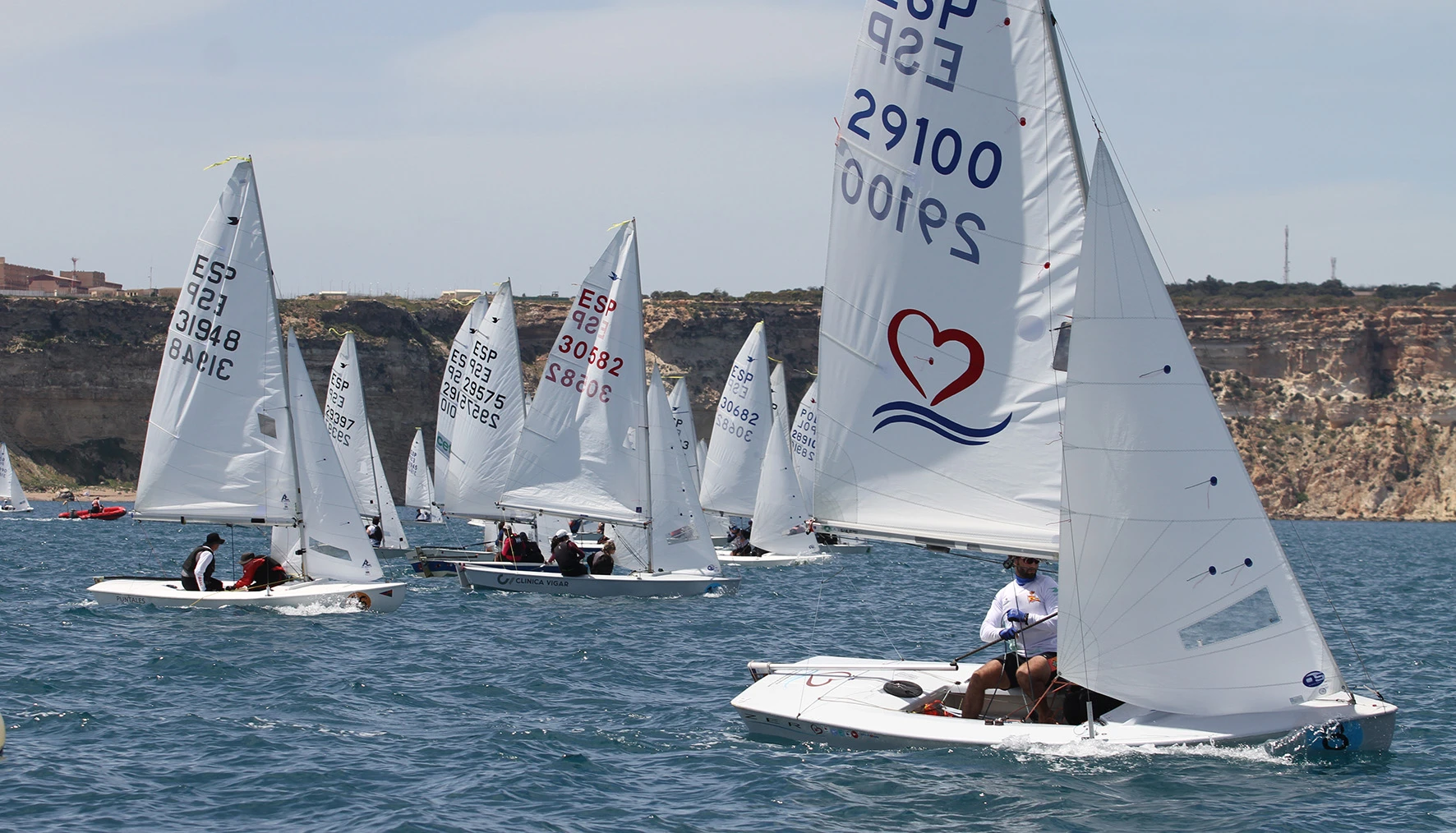 El centenar de embarcaciones participantes en esta competición se han dividido en dos grupos, amarillo y azul. Al filo de las 13 horas se iniciaba el procedimiento de salida de la primera prueba para el grupo amarillo, que se realizaba sin incidencias, con la flota poniendo rumbo al 005º con una presión que llegó a ser de hasta ocho nudos en algún momento de la prueba.