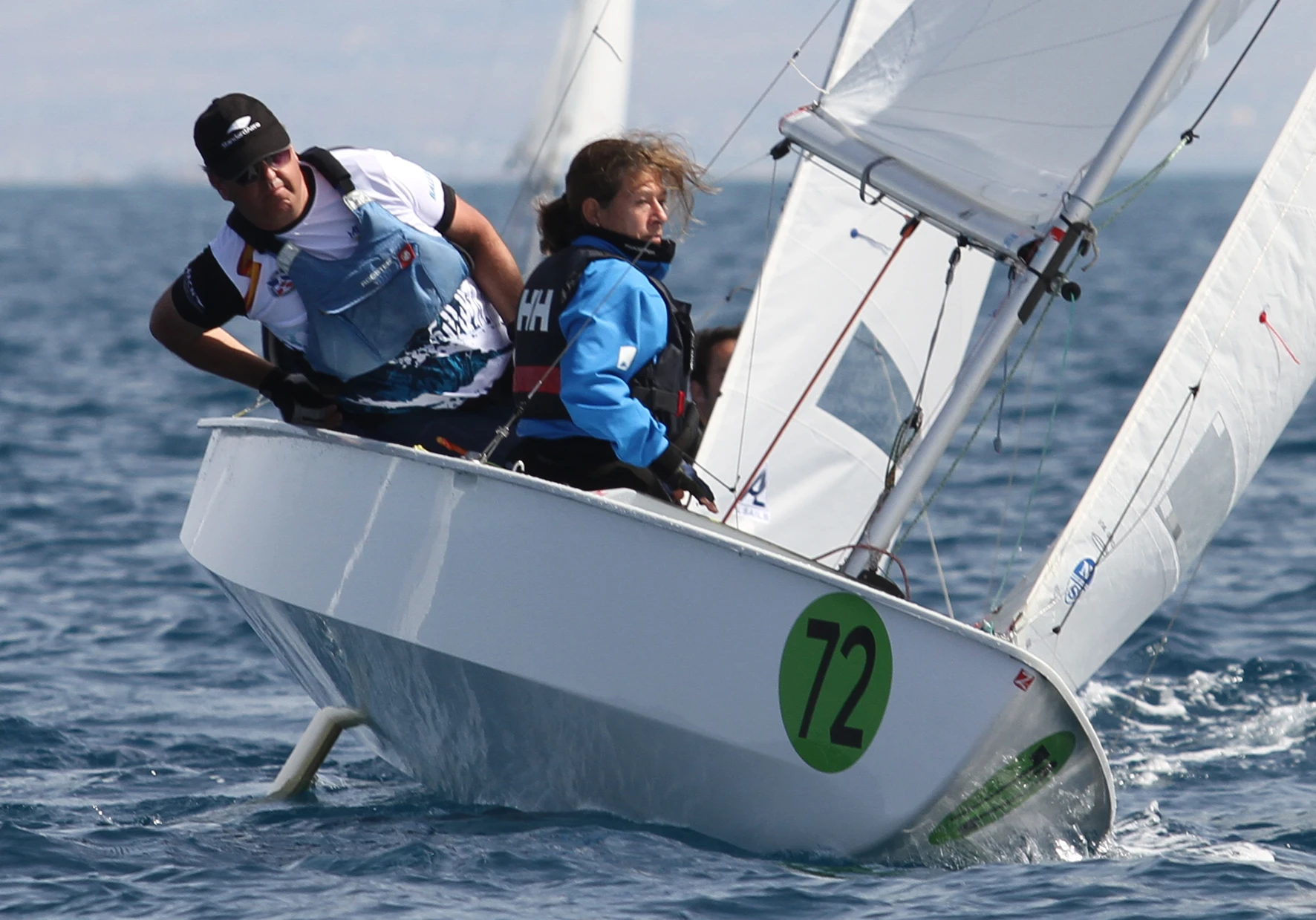 A continuación se iniciaba el procedimiento para iniciar la segunda manga. En este caso, el Comité situaba el eje de salida al 010º, en este caso el viento en barlovento tenía menos presión que sontavento, pero aún así se conseguía dar la salida al grupo amarillo, al que finalmente se le acortó y modificó el recorrido durante la prueba. Por su parte, el grupo azul tuvo dos llamadas generales y finalmente tuvo que esperar a la finalización de la prueba del grupo amarillo para iniciar su segunda manga, esta vez con salida con ‘bandera negra’.