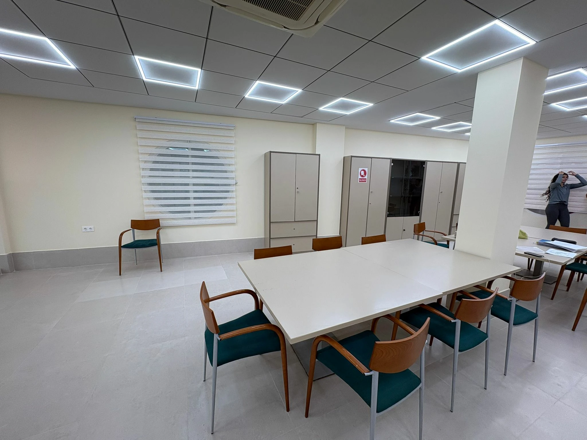 La sala ha sido diseñada como un espacio diáfano, moderno y funcional, orientado a ofrecer un entorno cómodo y adecuado para el estudio. Entre sus principales características destaca el acceso adaptado, lo que garantiza la accesibilidad para todos los usuarios.