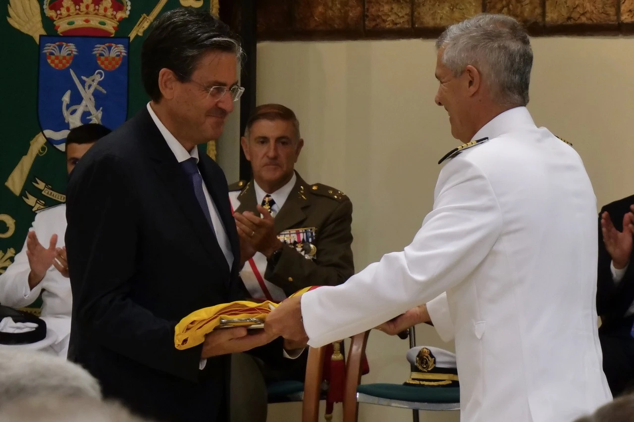 El presidente del Real Club Marítimo de Melilla(RCMM), Jerónimo Pérez, en nombre de todos los socios de la entidad recibía este pasado martes, festividad de la Virgen del Carmen una bandera de España cedida por la Comandancia Naval de Melilla.