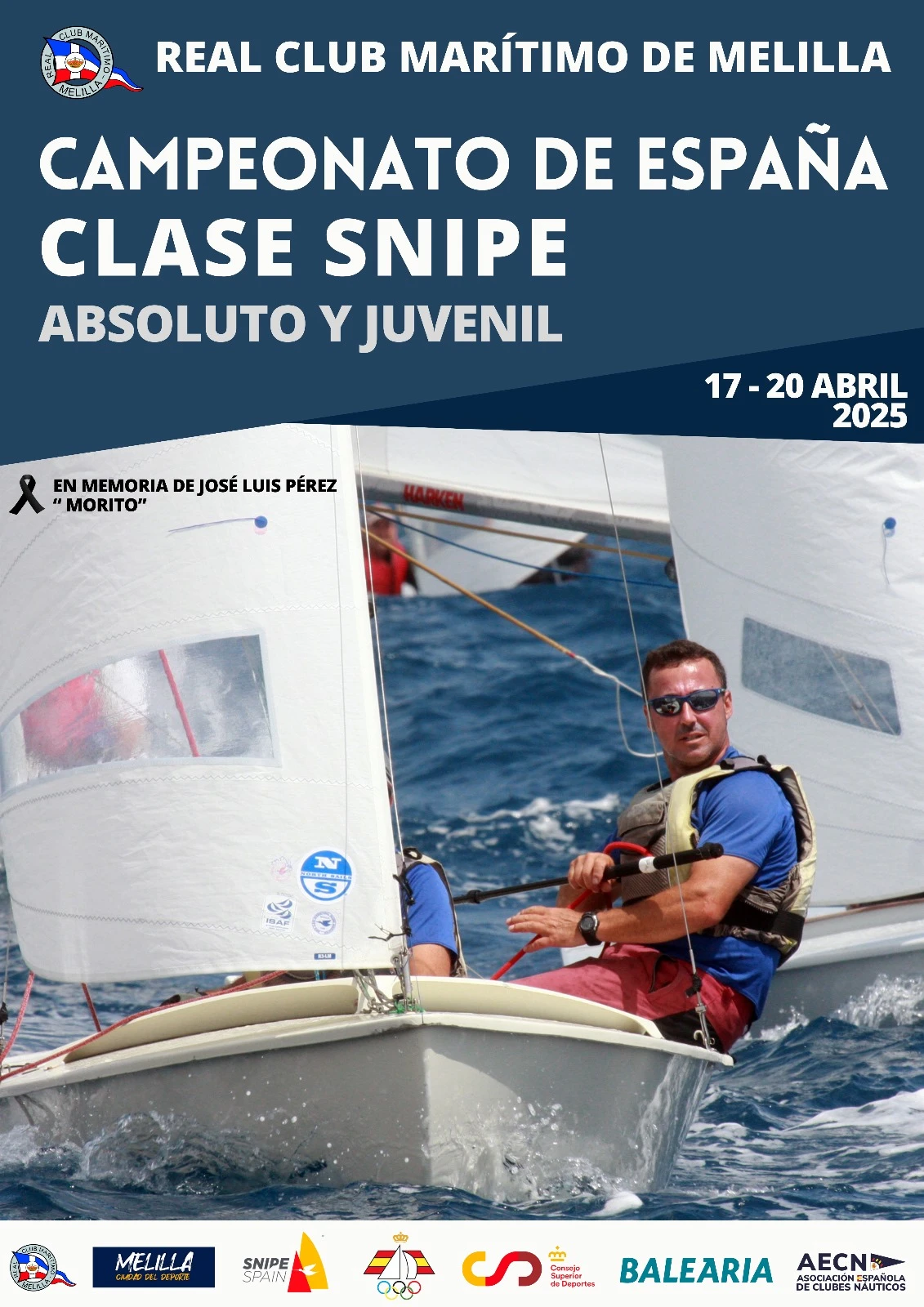 Una imagen de José Luis Pérez, en una competición de snipe celebrada en Melilla, ilustra el cartel del Campeonato de España.