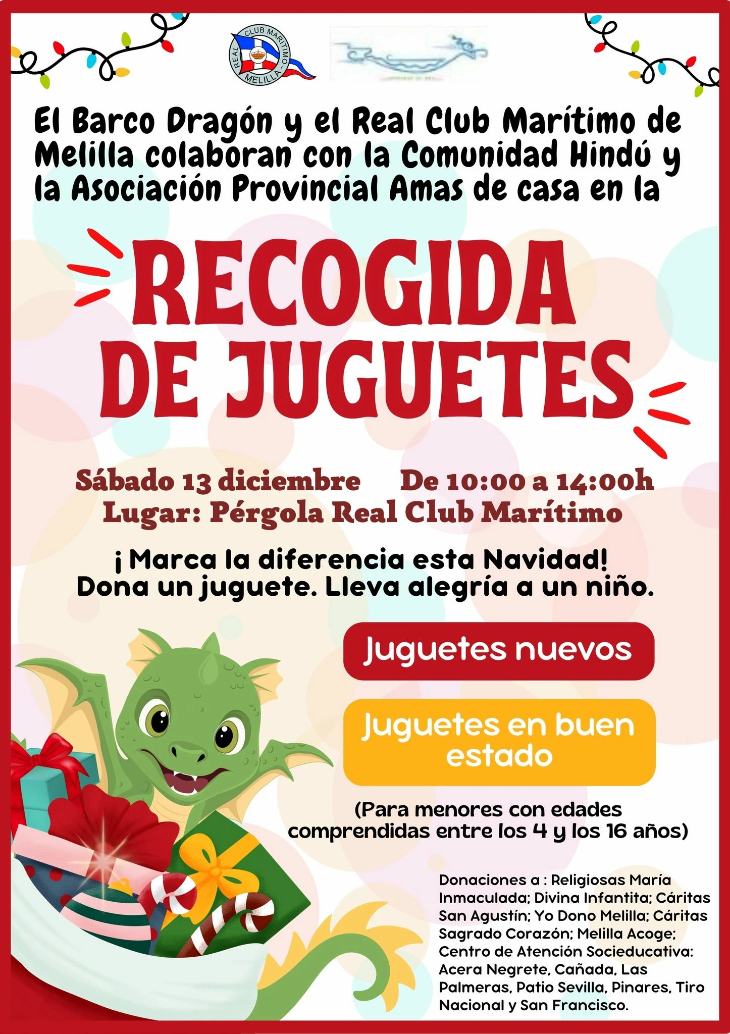 El Real Club Marítimo de Melilla, a través de su sección ‘Barco Dragón’, colabora con la iniciativa que este fin de semana pone en marcha la Comunidad Hindú de Melilla y la Asociación Amas de Casa ‘Un Juguete, una Sonrisa’.