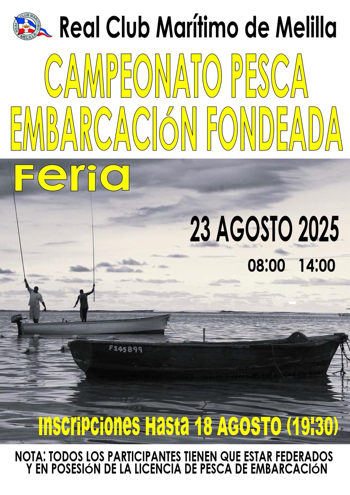 Entre la agenda de actividades que se desarrollarán con motivo de las Fiestas Patronales de nuestra ciudad, el RCMM tiene previsto desarrollar sus competiciones de pesca, en las modalidades de embarcación fondeada, adulto e infantil en cantil.