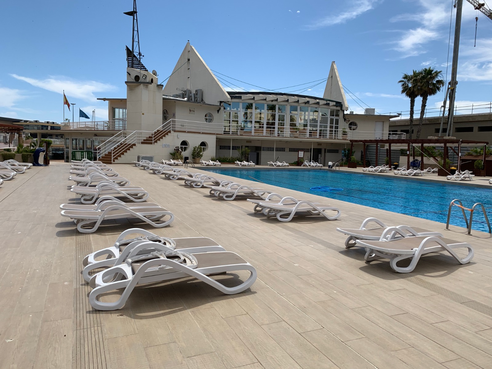 La zona de piscina y para tomar el sol, también están dispuestas guardando la preceptiva distancia social.