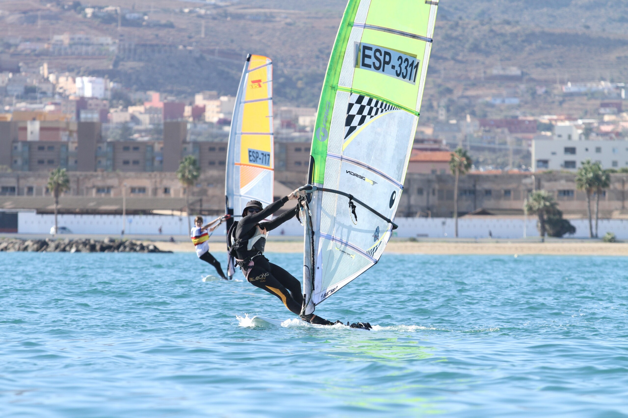 Las clases de vela ligera y windsurf compitieron este sábado y domingo en el interior de la bahía, completándose seis mangas en optimist, Ilca4 y techno 293, siete en el caso de las tablas de iQFoil y cuatro para las unidades de snipe.