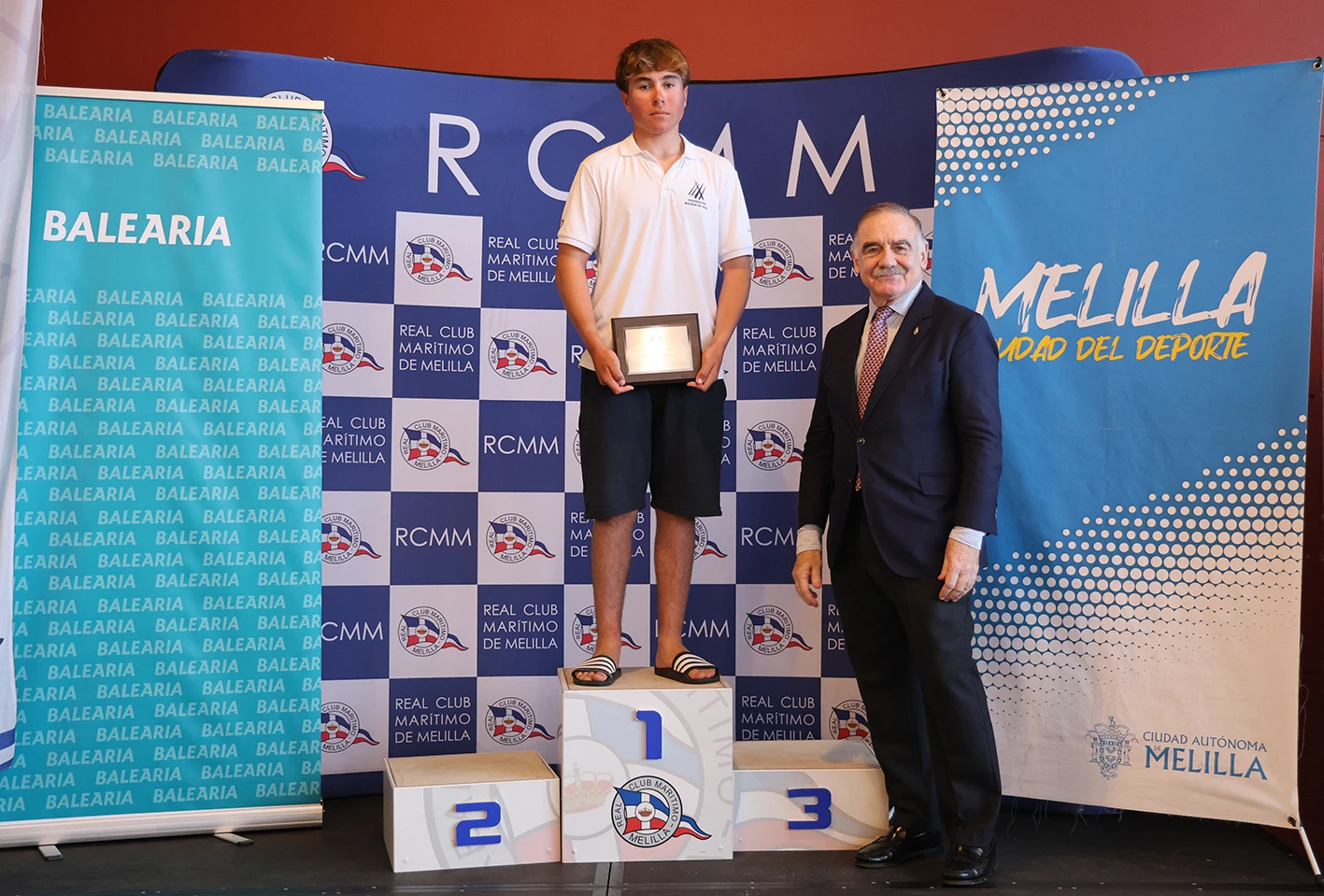 La ceremonia de clausura y entrega de trofeos tuvo lugar en las instalaciones del club anfitrión, en un acto que contó con una amplia representación institucional. Junto al consejero de Deportes, Miguel Ángel Fernández, y el presidente del RCMM, Jerónimo Pérez, asistieron el comandante general, Luis Cortés; el senador Fernando Gutiérrez; el presidente de la Autoridad Portuaria, Manuel Ángel Quevedo; el jefe superior de la Policía Nacional en Melilla, Juan de Dios Piedra; el coronel de la Delegación de Defensa, Jesús Damián González de Quevedo; el director general de Política Deportiva, Ángel Guerrero; y una representación de la directiva del club, encabezada por su vicepresidente, Rafael Imbroda.