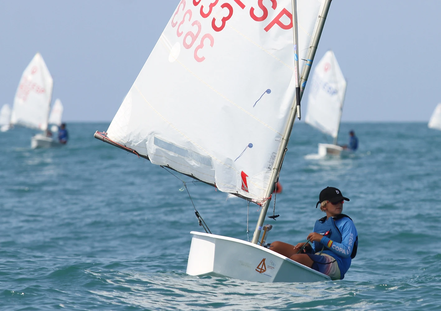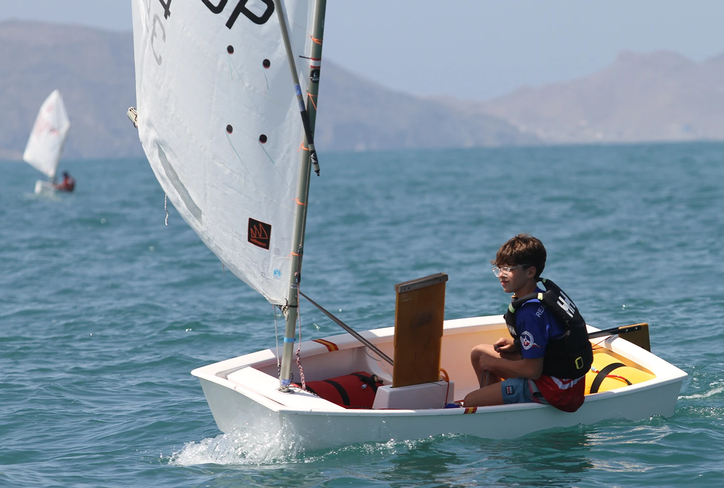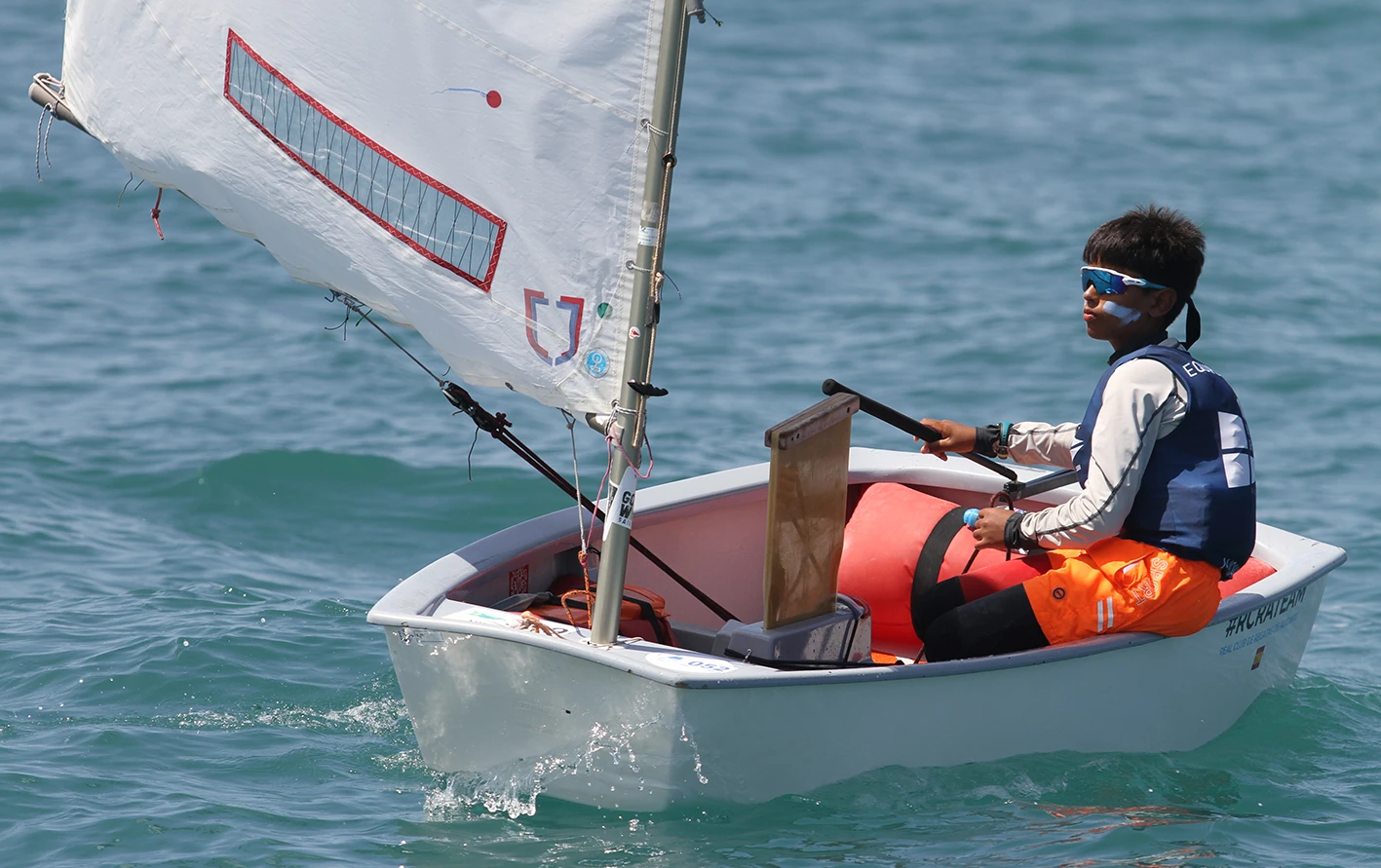 Martín Aguilar ha pasado a liderar la flota optimist, por delante de Mariano Sarmiento (CM Almería) y Kaja Kolasinska (RC Mediterráneo)