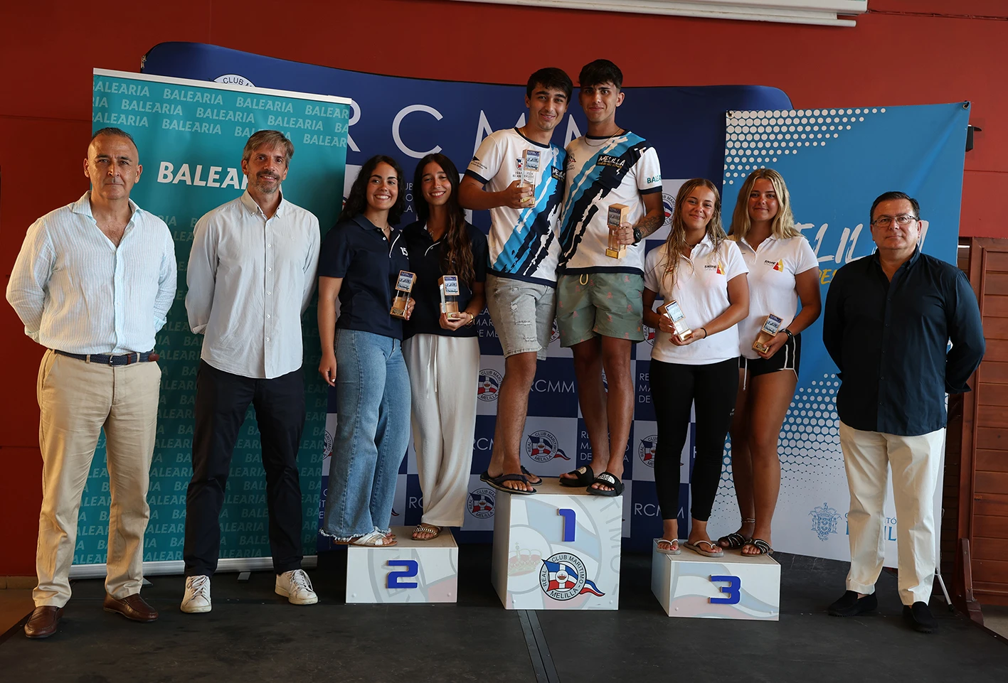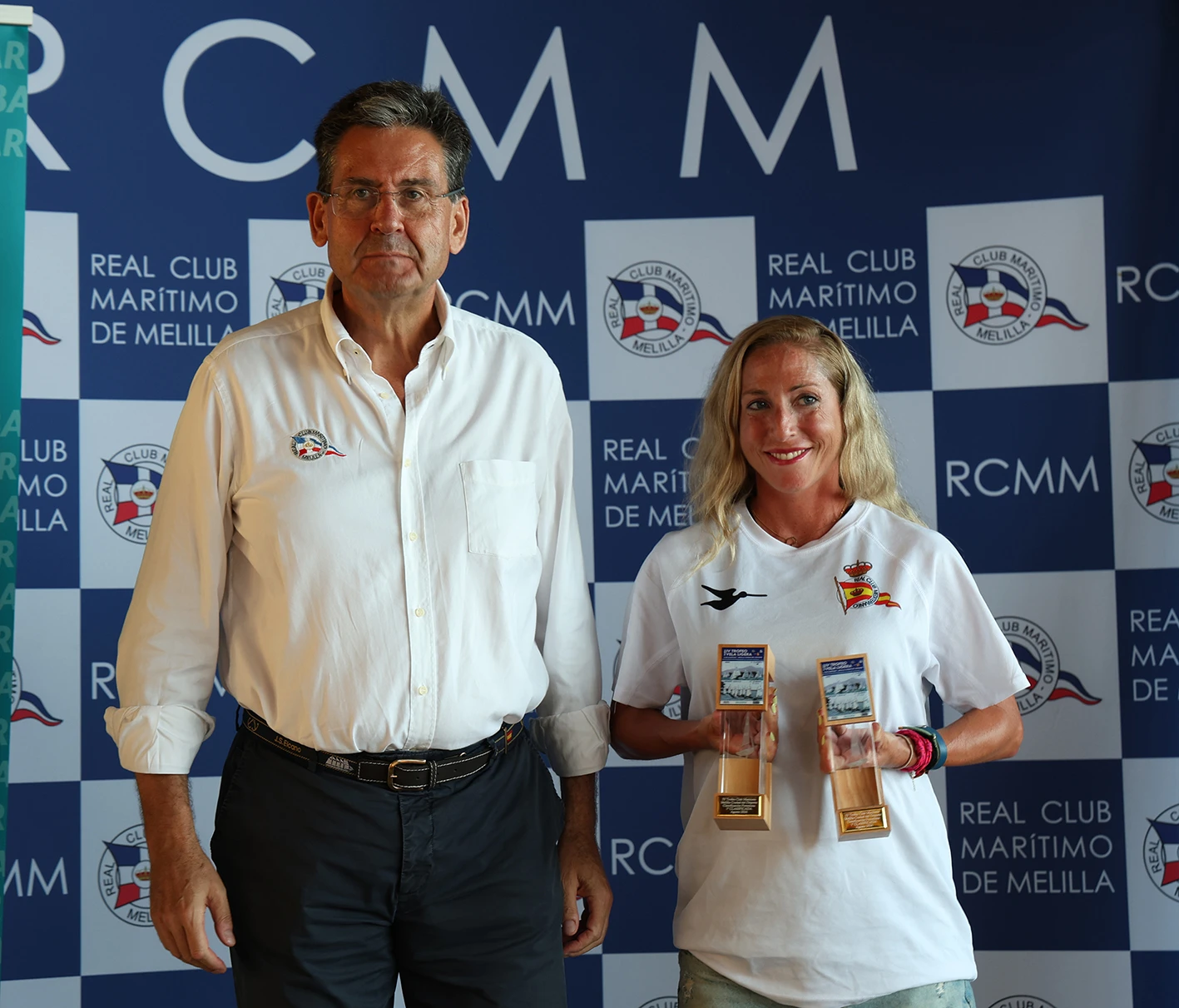 Jordi Triay y Martín Fresneda han recibido los galardones que los acredita como campeones del IV Trofeo de Vela Ligera Real Club Marítimo – ‘Melilla, Ciudad del Deporte’ en la clase snipe. De esta forma, se ha clausurado la primera parte de la Regata, que durante toda esta semana se celebra en la ciudad autónoma de Melilla.