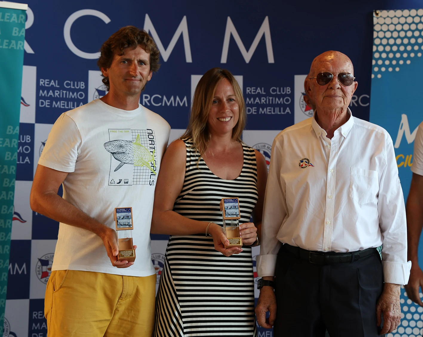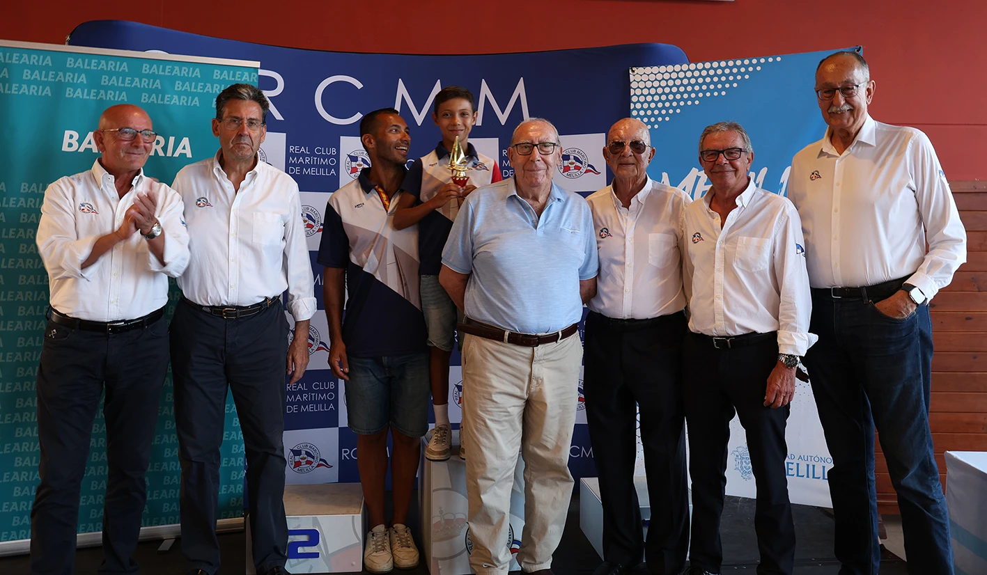 La organización también quiso tener un detalle con el tripulante más joven de la regata, Pablo Rivas, con sólo nueve años y tripulante de la embarcación patroneada por José Francisco Valderrama. El joven Pablo estuvo acompañado de su padre y abuelo, así como de los directivos del Real Club Marítimo de Melilla.