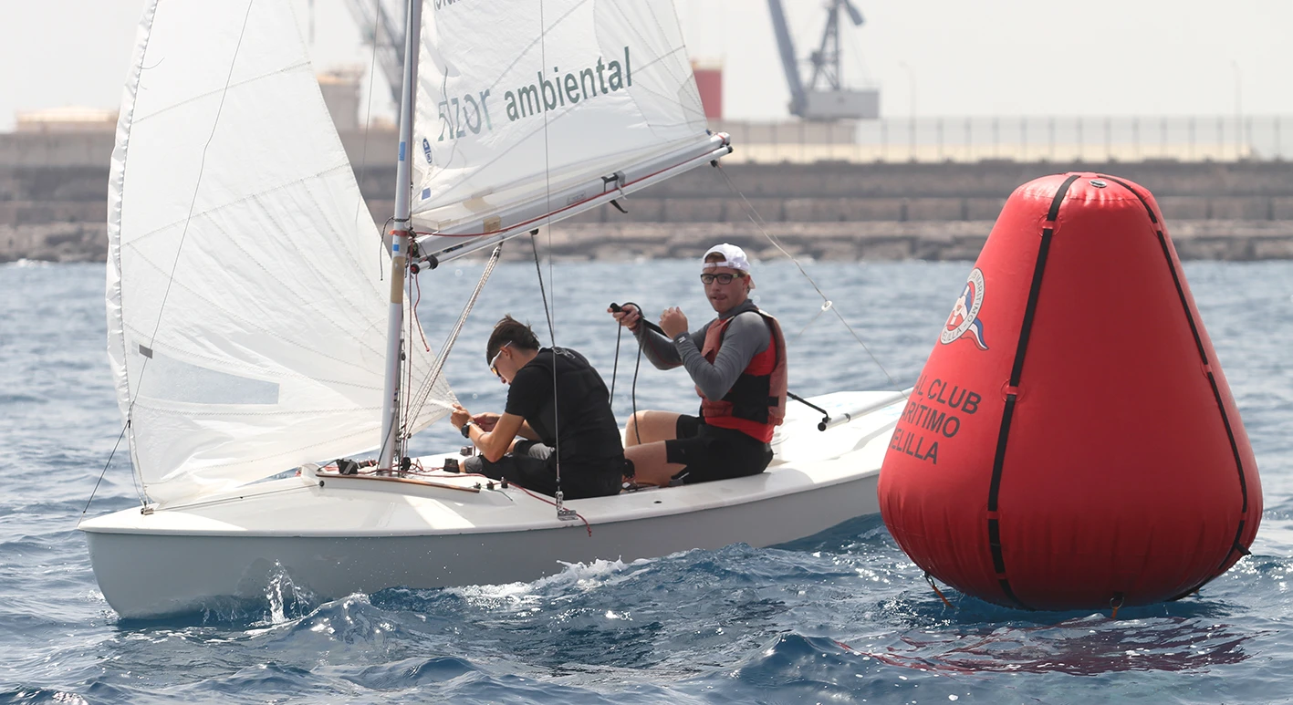 El Trofeo ‘Real Club Marítimo de Melilla-Melilla, Ciudad del Deporte’ ha celebrado este viernes su primera jornada para la flota snipe, en la que tras completarse dos mangas hasta tres tripulaciones comparten el primer puesto de la clasificación provisional, con Miguel Dueñas y Juanmi Lucas como primeros clasificados tras ganar la última prueba del día.