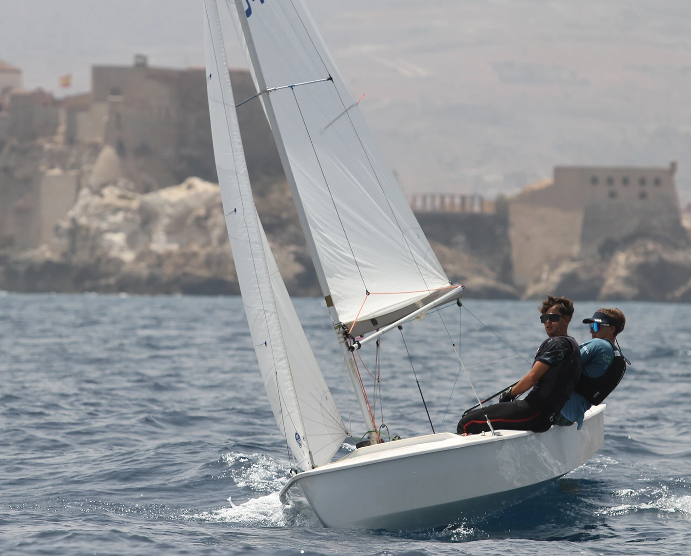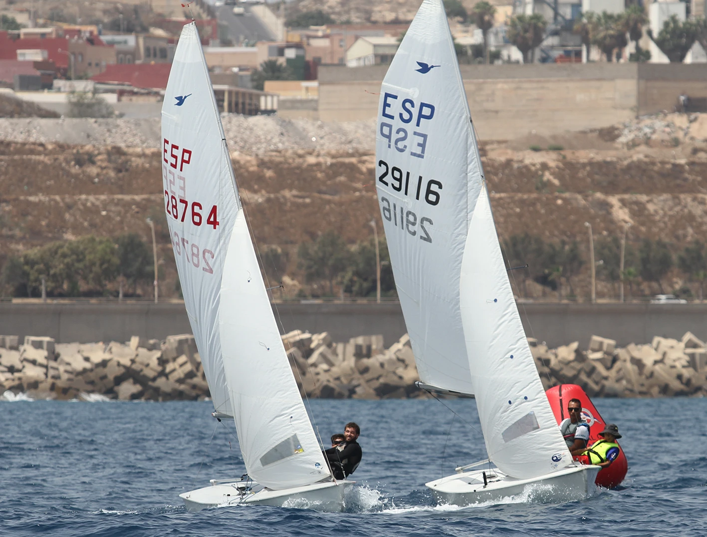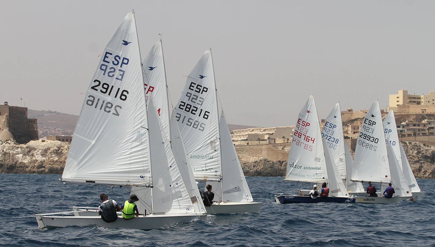 Este viernes han predominado vientos del 355º con una intensidad entre cuatro y ocho nudos, por lo que el Comité de Regata ha montado un bastón (barlovento-sotavento) frente a la playa de Horcas Coloradas y con las murallas de Melilla La Vieja como testigos de las dos mangas iniciales del Trofeo para la clase snipe. De igual forma, una embarcación de la Guardía Civil se sumaba a la organización para velar por la seguridad de la competición en el campo de regatas.