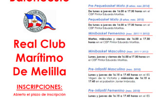 El Real Club Marítimo de Melilla abre el plazo de inscripciones en su Escuela de Baloncesto. Todos los interesados deben dirigirse a la Oficina del Real Club Marítimo de Melilla, [...]