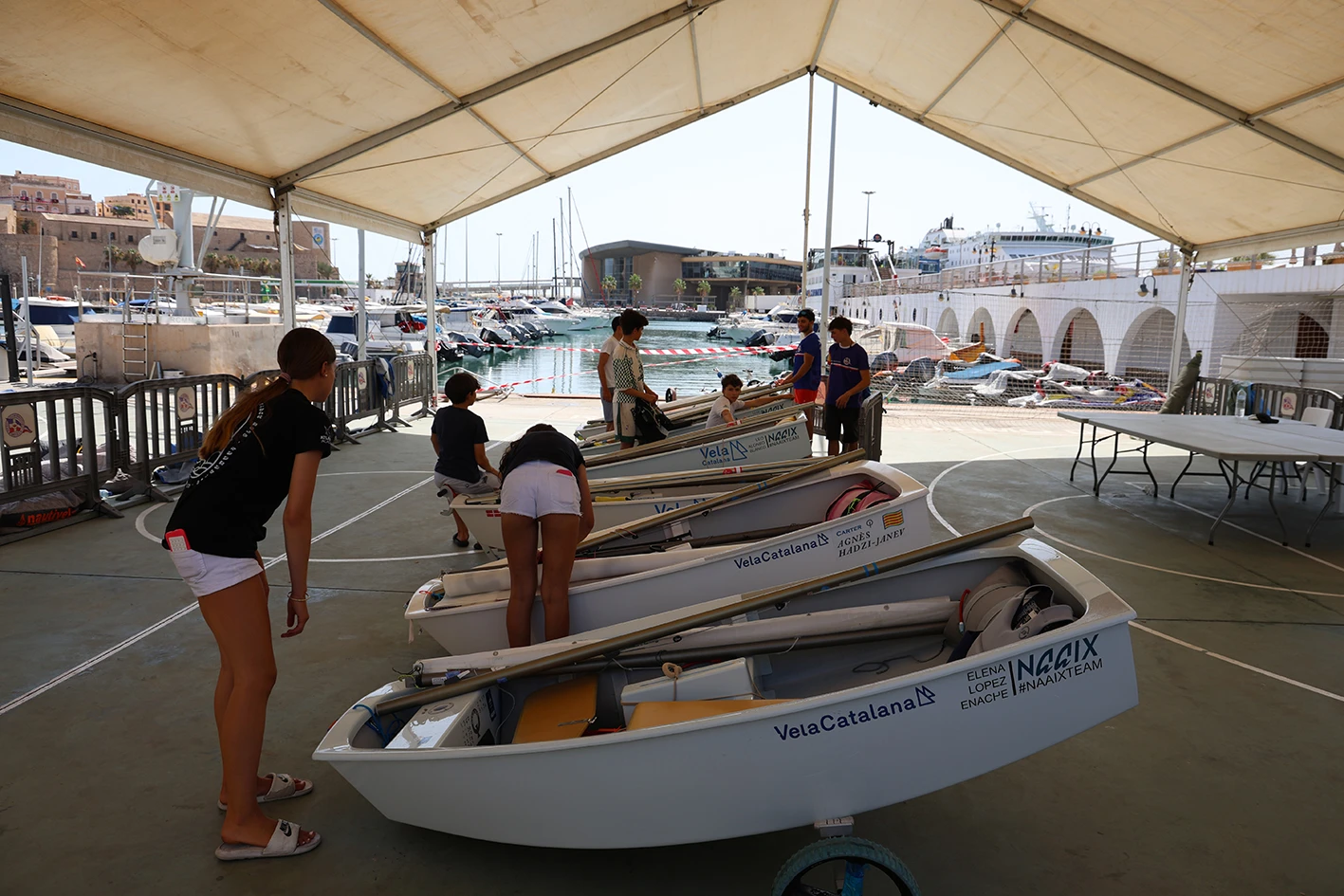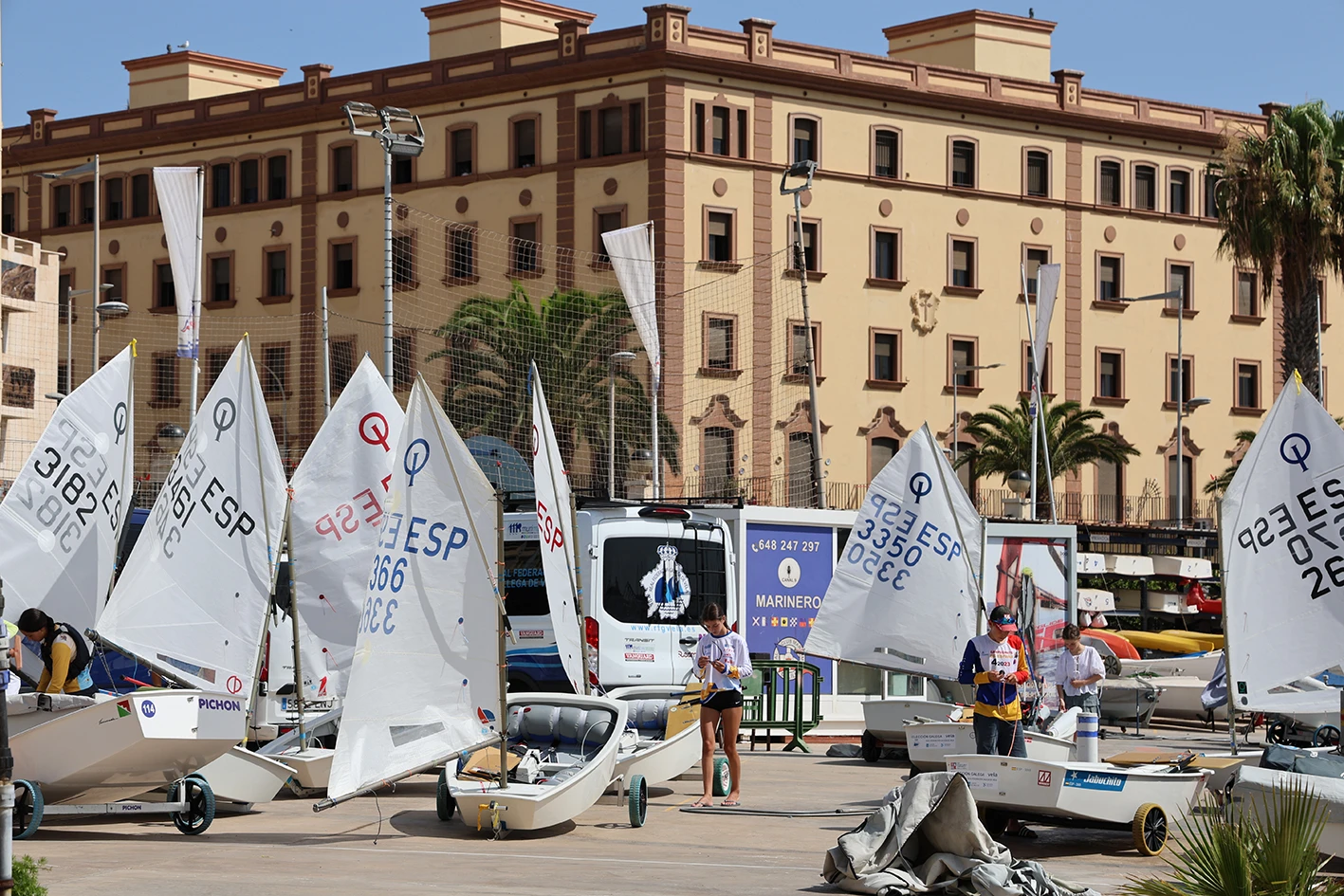 Este jueves, la Oficina de Regata y la zona de Mediciones han sido el punto de encuentro para regatistas y técnicos, quienes tras cumplir estos trámites con la organización han aprovechado para tener su primer contacto con el campo de regata melillense.