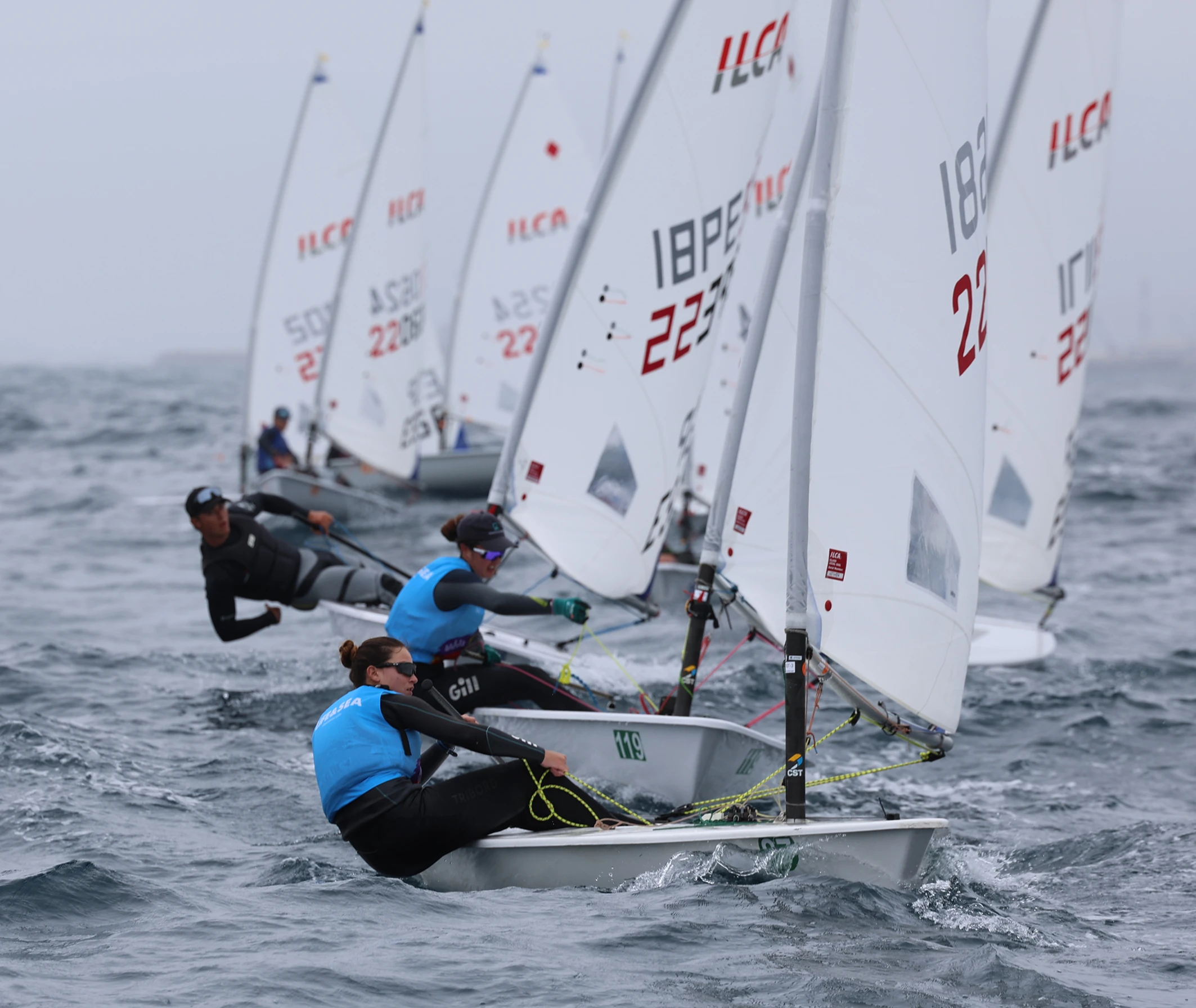 Los regatistas, nuevamente divididos en los grupos azul y amarillo, han completado tres mangas, por lo que con cinco en total del Campeonato ya se ha producido un descarte.