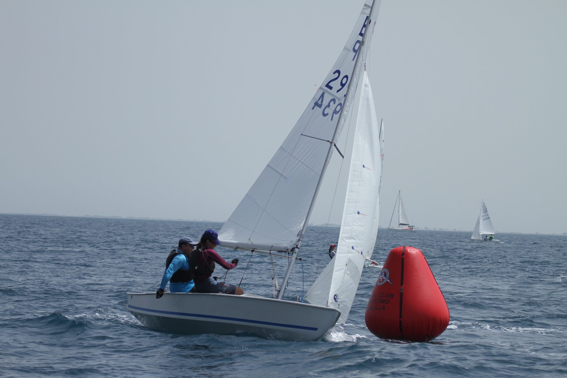 A partir de ahí, las condiciones empeoraron en la bahía melillense, con vientos racheados de poniente que oscilaban entre catorce y veinticuatro nudos. Ante tal circunstancia el Comité izaba “aplazamiento sobre H” y la flota se dirigía a buscar refugio en el Club Marítimo. Algunas tripulaciones tenían que ser atendidas por las embarcaciones de apoyo, pero la situación se solventaba sin mayores incidencias.