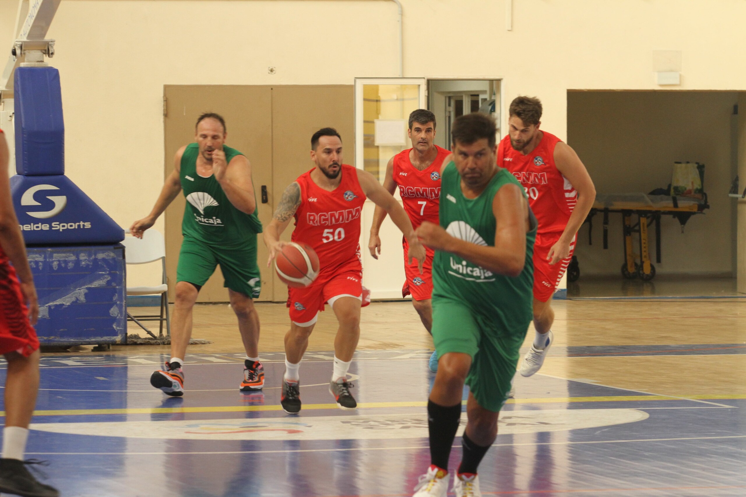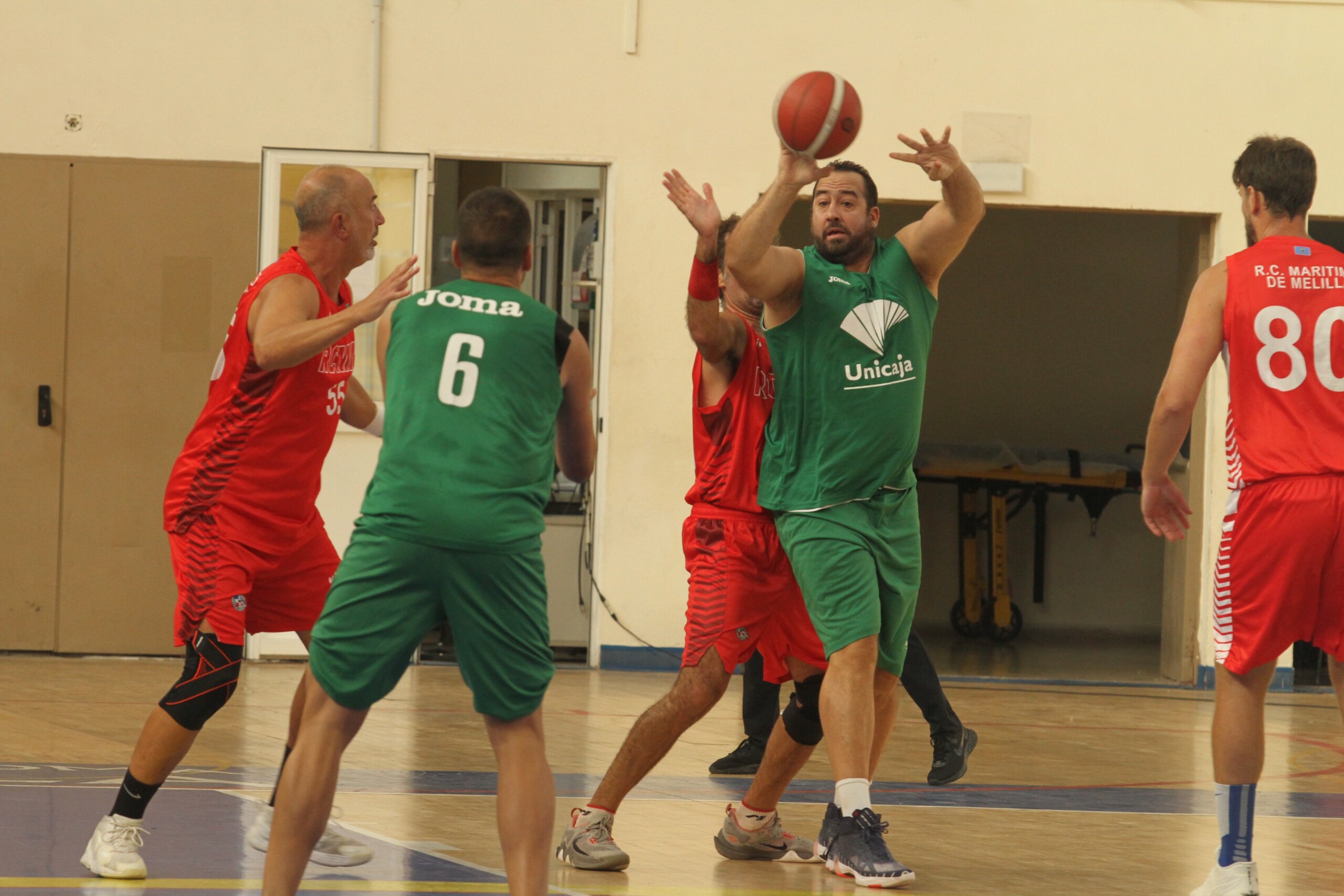 Los veteranos Del Real Club Marítimo de Melilla y Unicaja Baloncesto han medido fuerzas sobre la pista, con victoria del conjunto malagueño por 61-96.