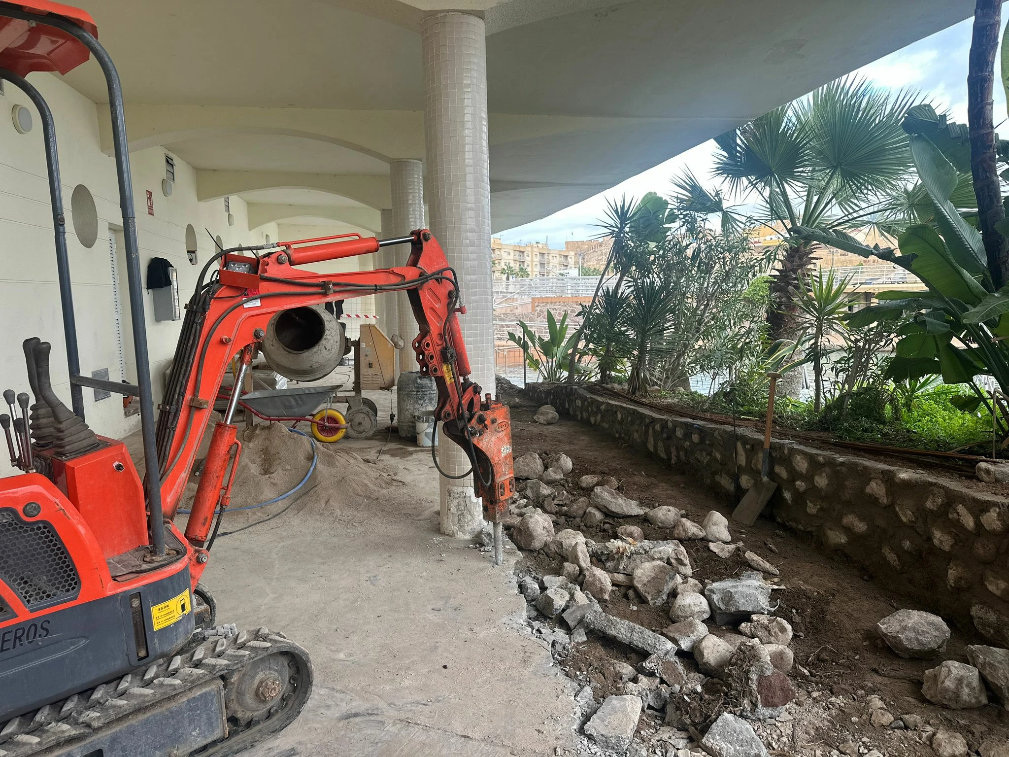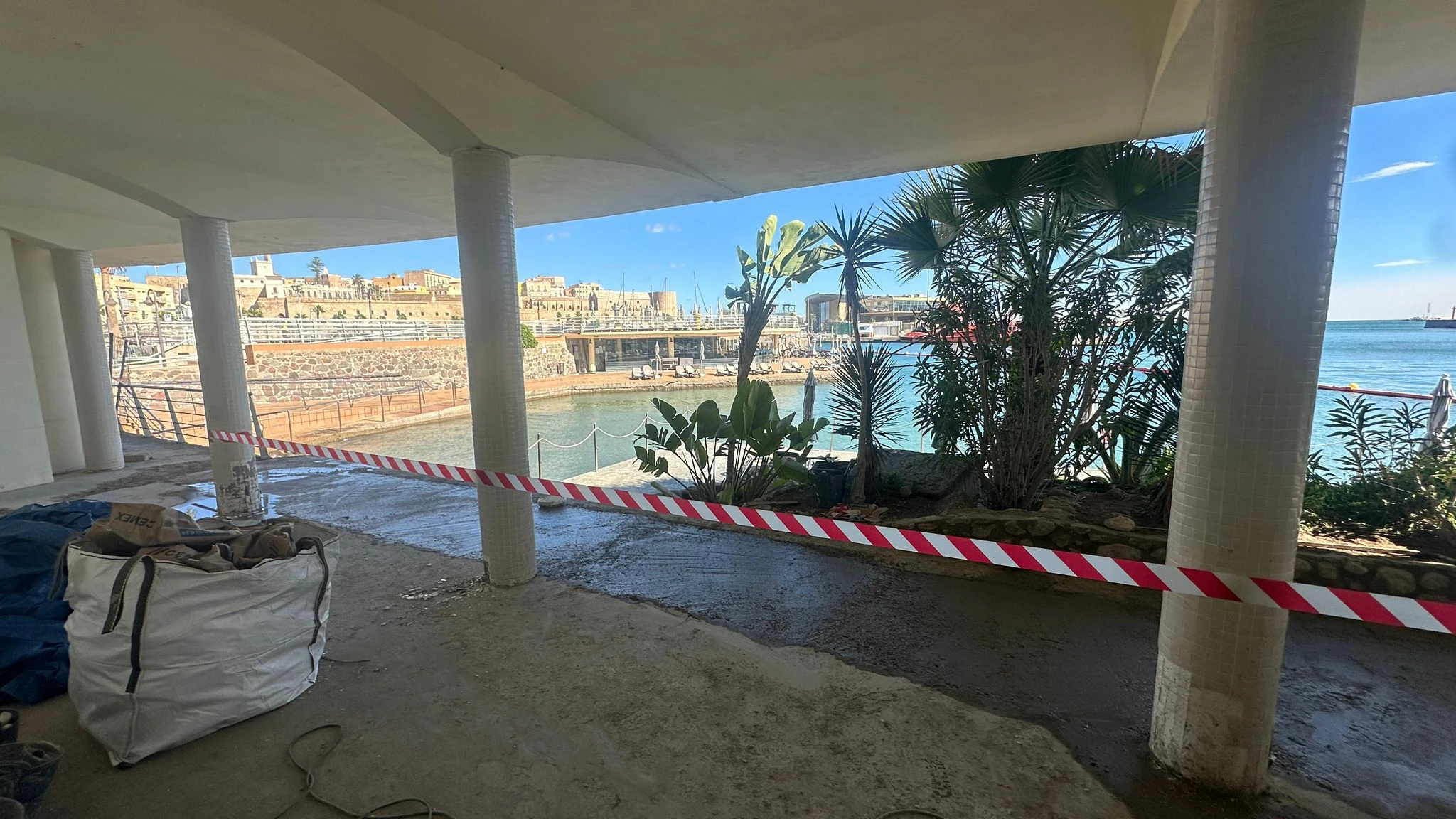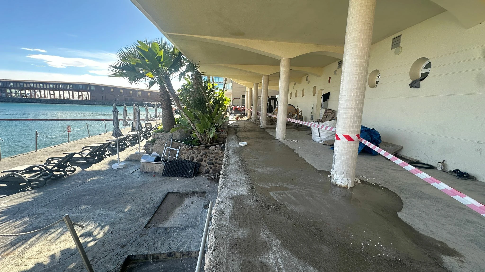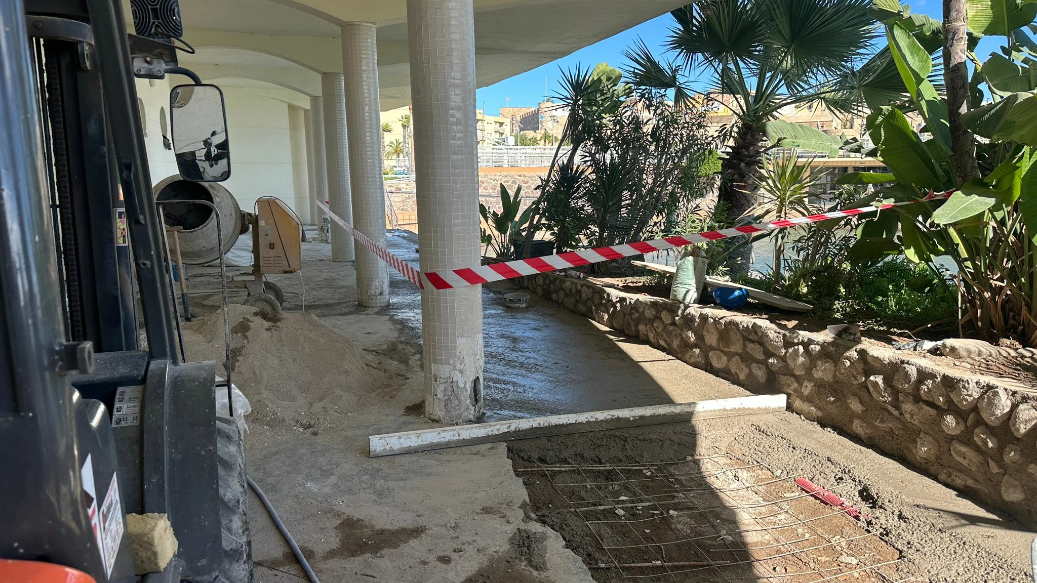 En estos días se está trabajando para renovar la zona cubierta en el Paseo de la Plancha, donde se ha ampliado la zona peatonal, tras la retirada del muro existente.
