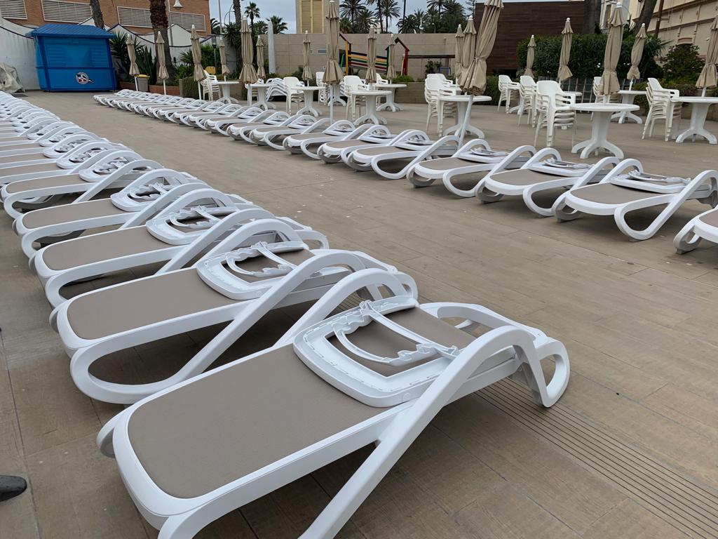 Se han sustituido las hamacas por 250 nuevas en color blanco y negro que ya están situadas y que ya están a disposición de todos nuestros socios.