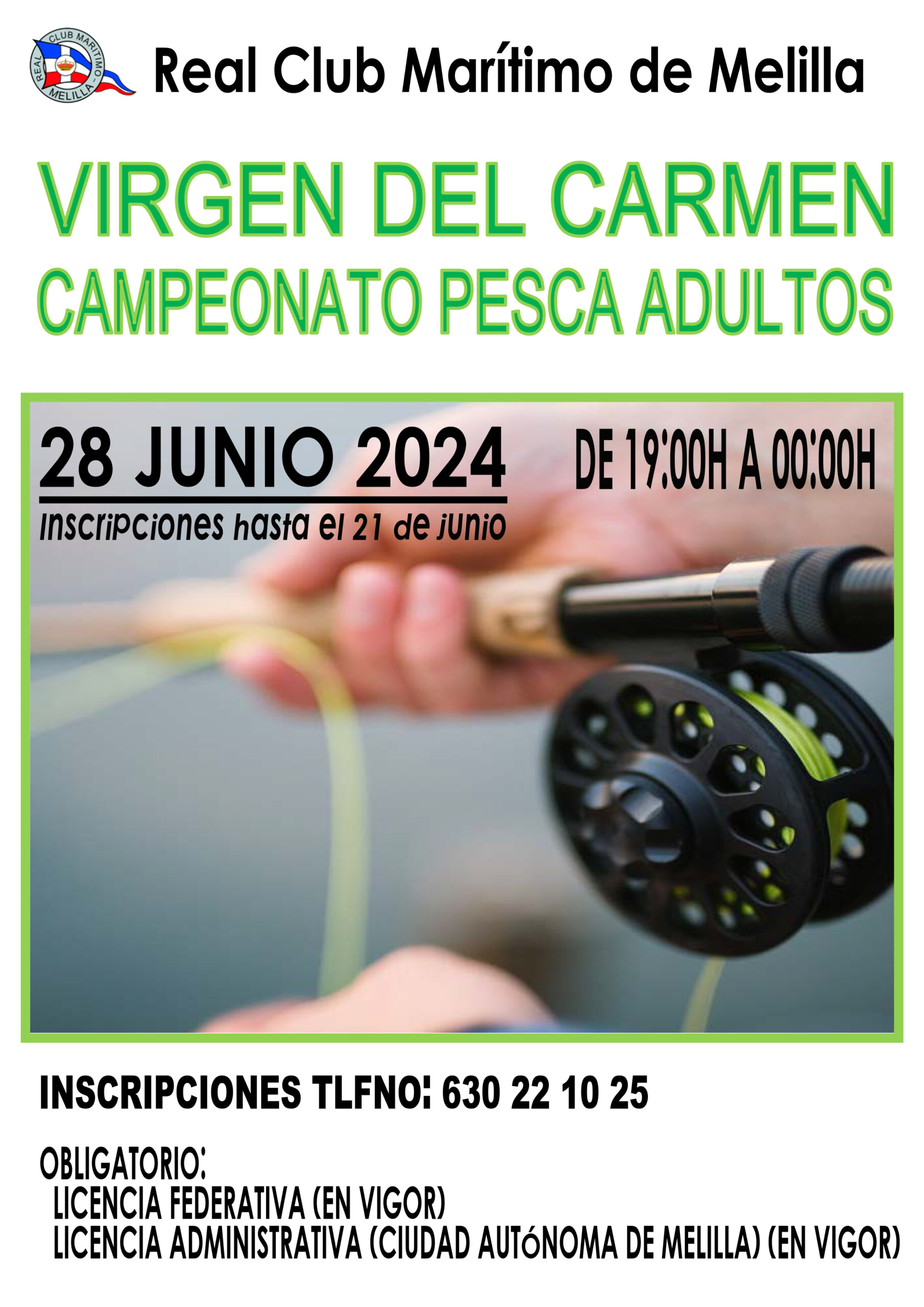 Por ultimo, el viernes 28 de junio, se disputará el Campeonato de Pesca de Adultos. Las inscripciones se pueden formalizar hasta el viernes 21 de junio en el teléfono 630 22 10 25.