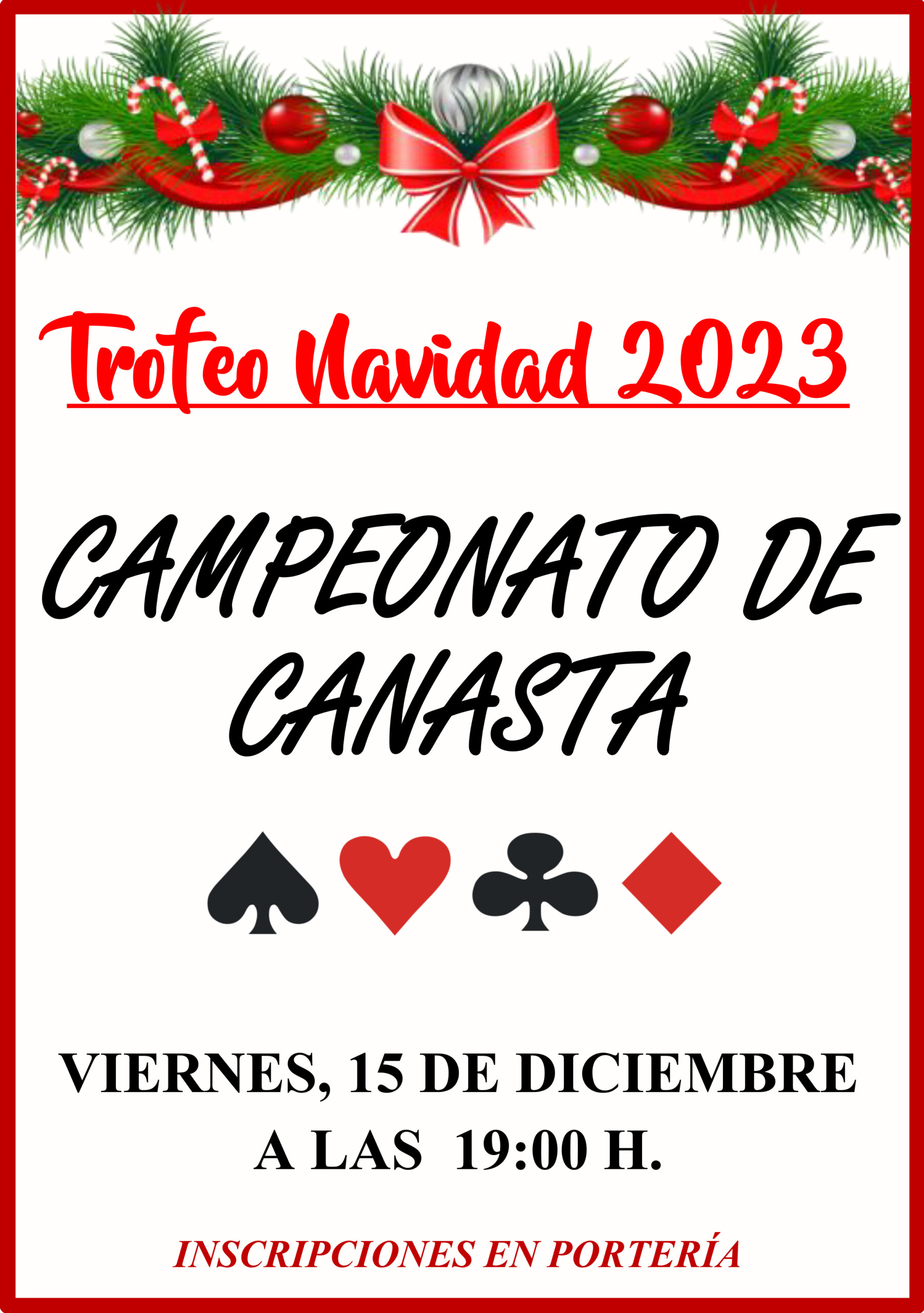 CAMPEONATO DE CANASTA; viernes 15 de diciembre, a las 19 horas.