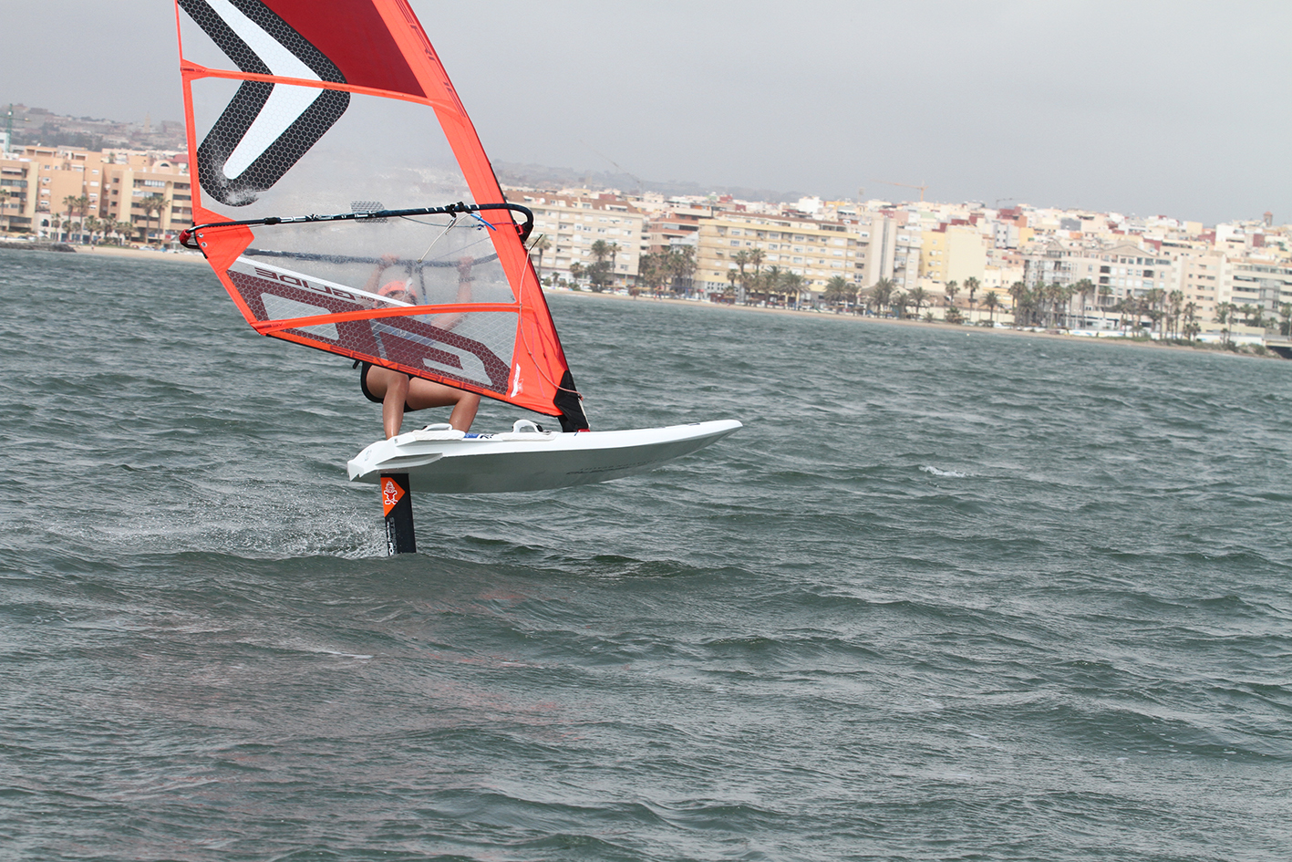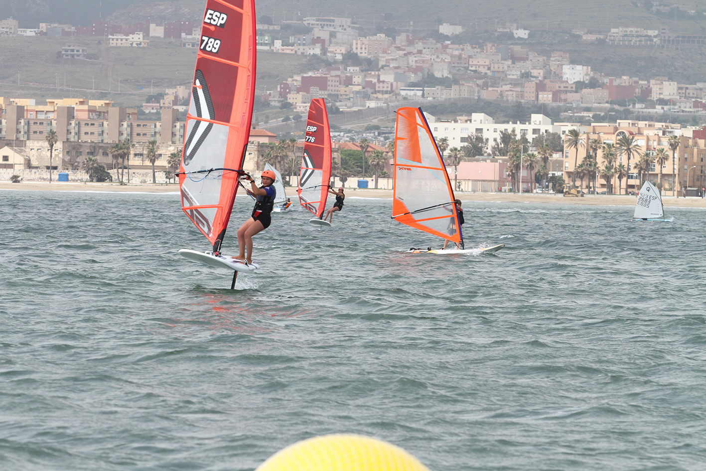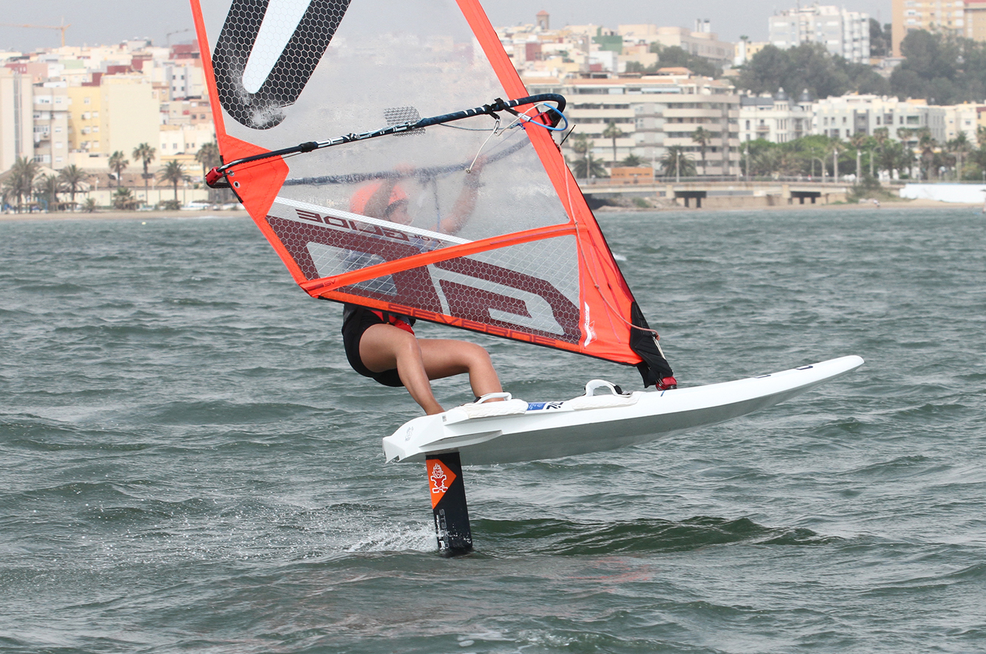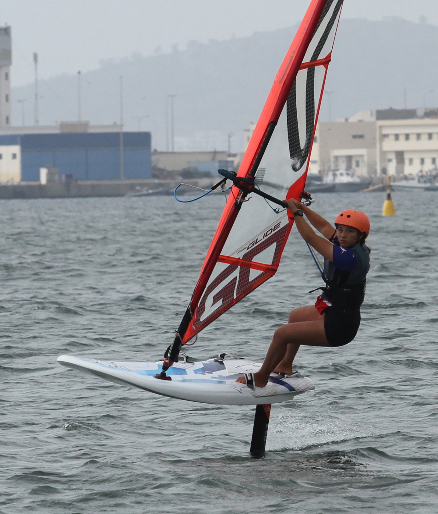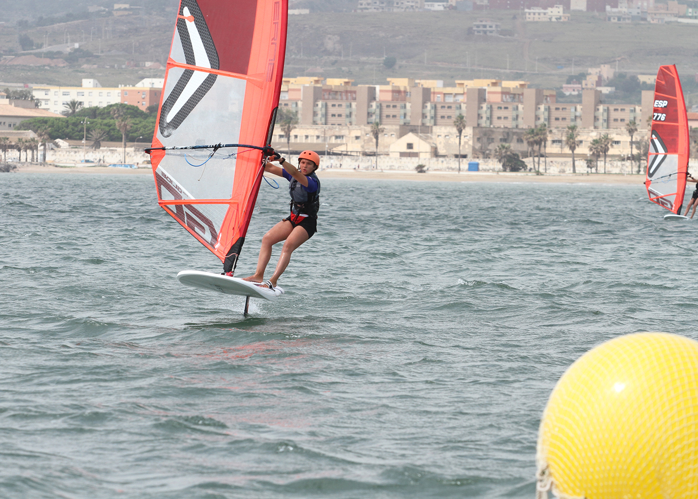 La flota de iQfoil ha realizado este domingo las cuatro mangas, aprovechando más viento que el sábado, con Azul Sánchez imponiéndose en todas las pruebas.