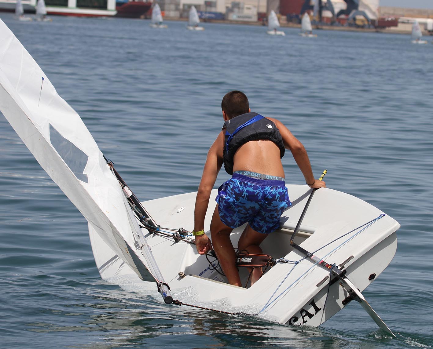 La falta de viento hizo modificar el recorrido y acortar los dos últimos tramos. Gonzalo Orense, del CN El Candado, entraba en primer lugar, por delante de Roberto Aguilar, del CNM Benalmádena, y de Javier Nollet, del RCN Motril.