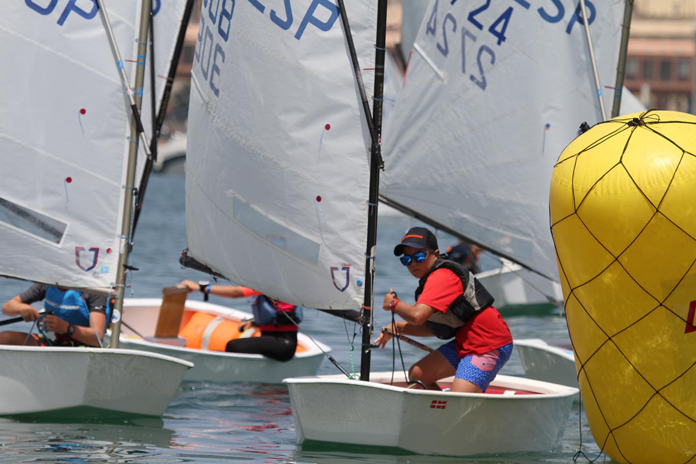La primera incidencia para el Comité se producía después de montar el recorrido con rumbo al 040º y un role lo hacía variar hasta el 020º. Con apenas cuatro nudos de intensidad, la flota de optimist tomaba la salida a las 13:40 horas.