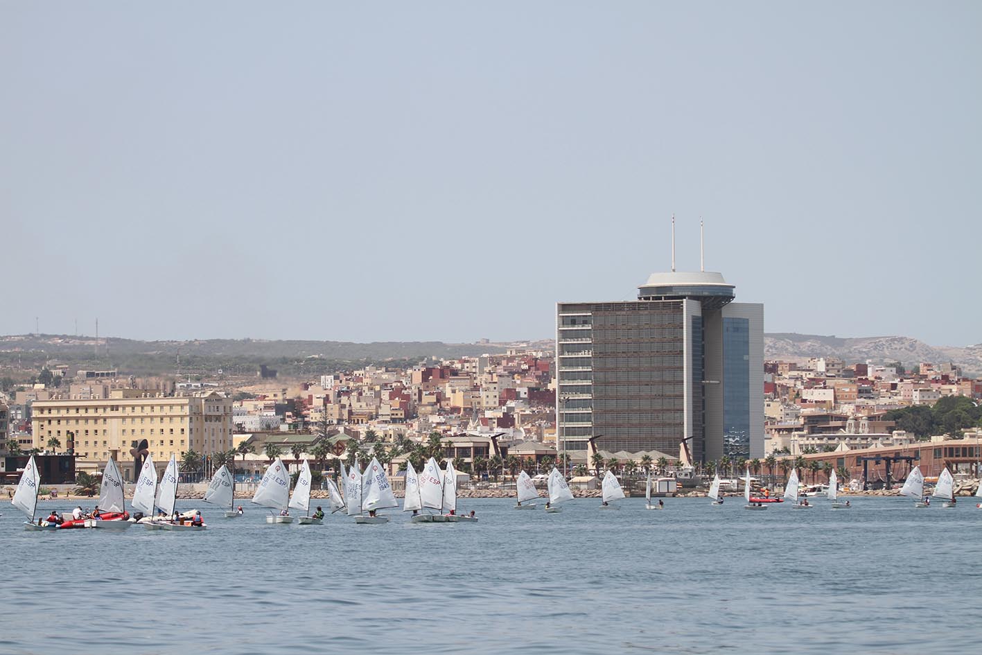 La jornada comenzaba muy temprano en las instalaciones del Real Club Marítimo de Melilla dando la bienvenida a las flotas de los siete clubes peninsulares que este año toman parte en la V Semana Náutica de Vela Ligera. Tras los preparativos previos y la reunión de patrones, los regatistas se echaban al agua sobre la una de la tarde.